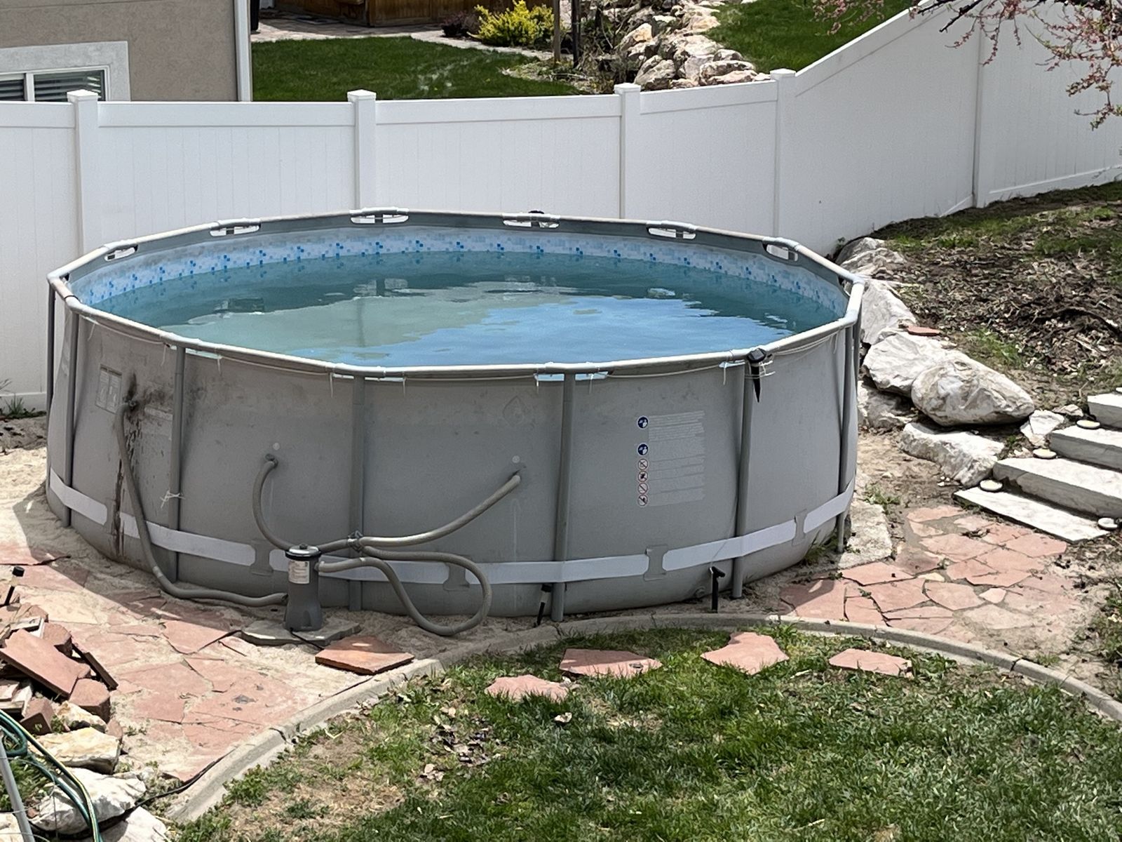 15 ft. x 48 in. above ground swimming pool, includes filter pump, ladder, and hoses. Used, good condition.