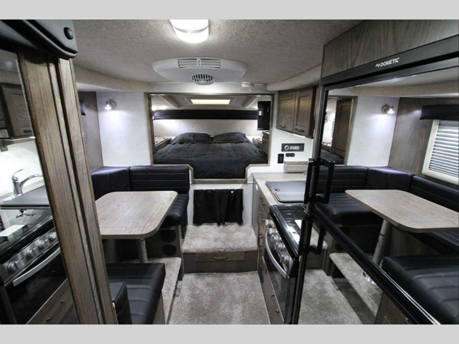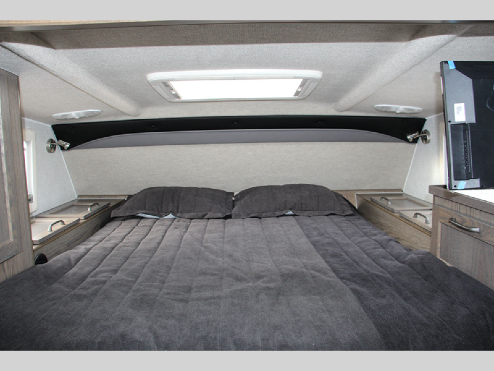 If you have a short bed truck then you need this truck camper for your next adventure! Start each morning feeling recharged after sleeping on the front queen bed while your electronics recharge at the 12V USB charging stations. Fill your bellies with fried bacon and eggs cooked on the three burner stove with oven and drink a cold glass of orange juice stored in the 6.3 cu. ft. two way refrigerator. Plus, you can eat your meals at the face-to-face dinette and transform into an extra sleeping space. You can even freshen up each morning in the wet bath. There is plenty of storage throughout with closets and overhead cabinets too! An optional 600AH lithium power system and optional Truma Combi furnace/hot water system can be added on this model for even more comfort and convenience!
