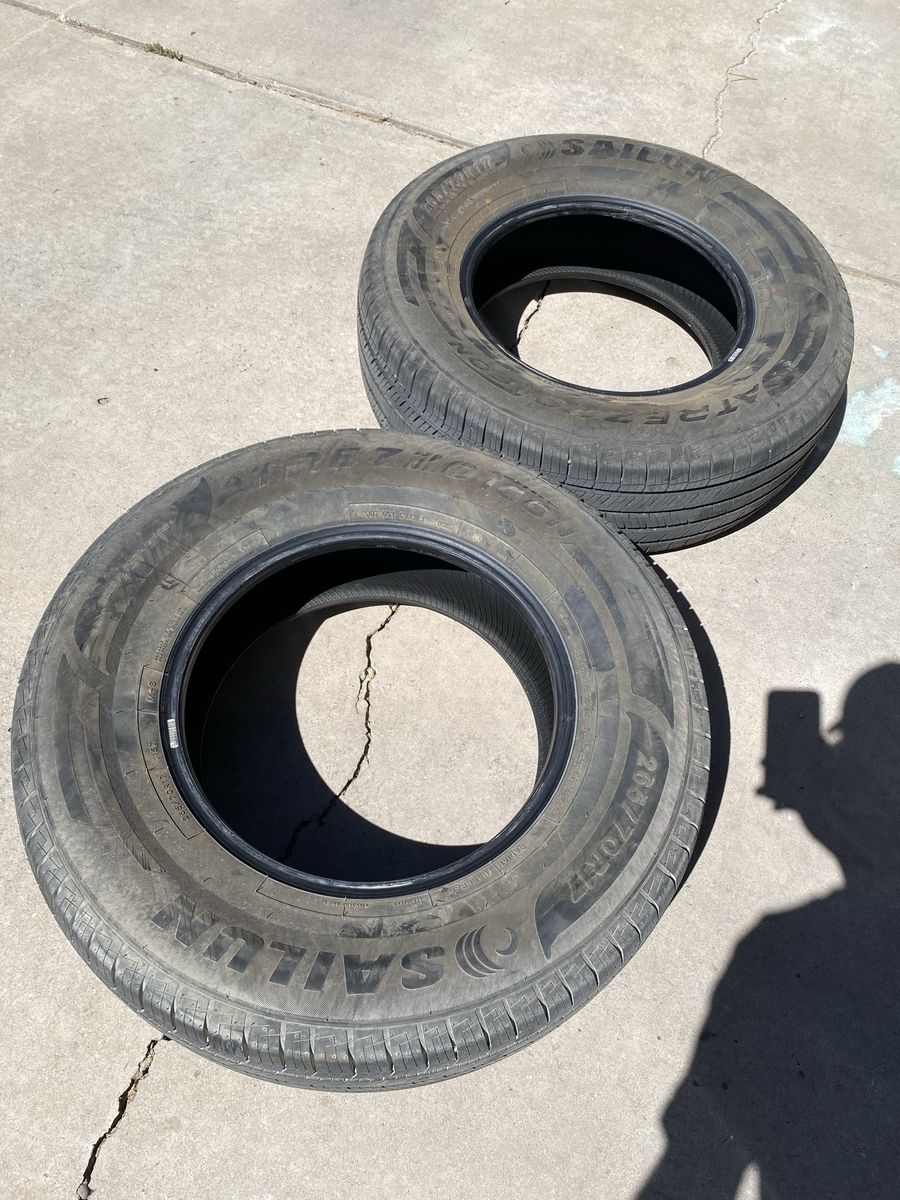 I have 4 tires. All in great shape. I put some large tires on my suv and don’t need these ones. 2 of them are geolander a/t. The other 2 are some off brand.