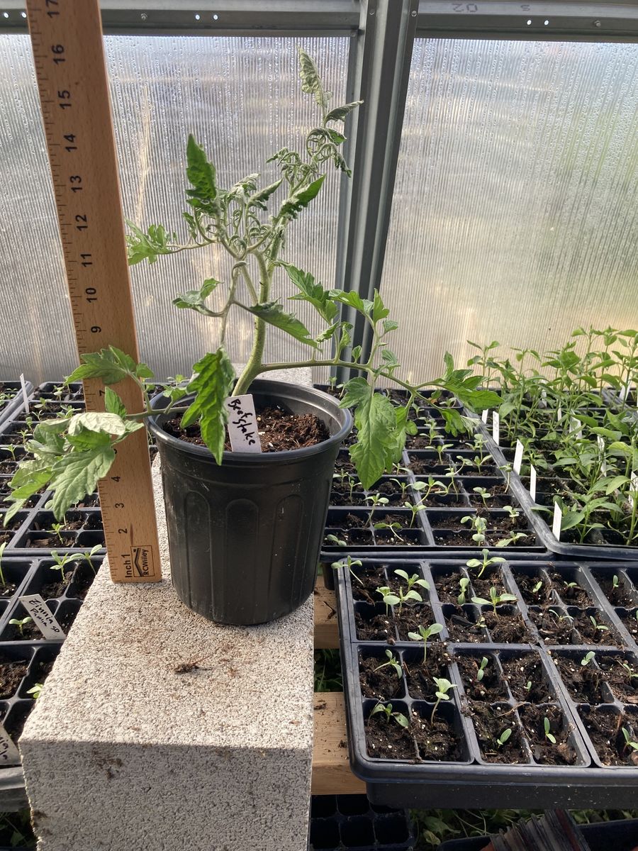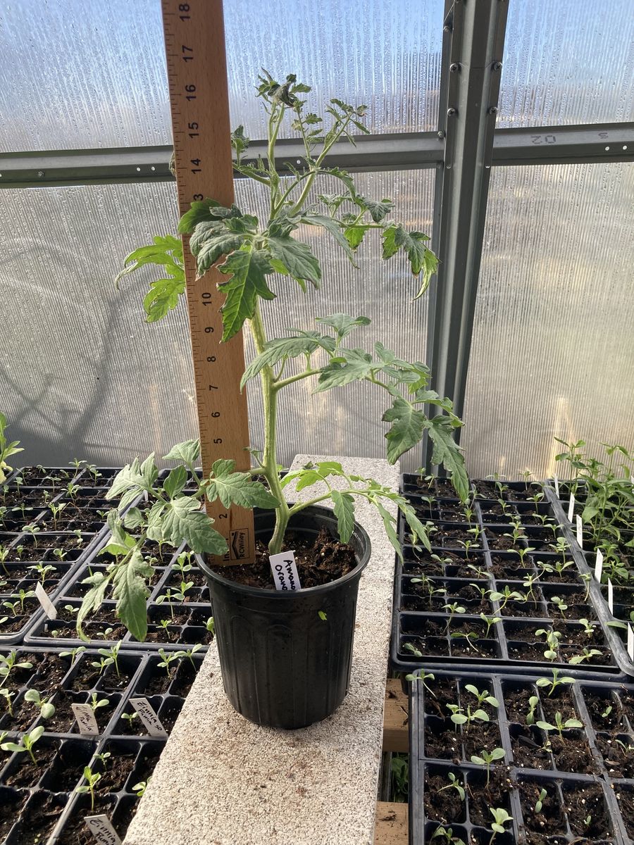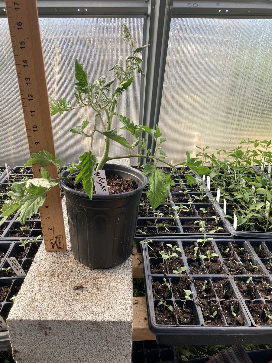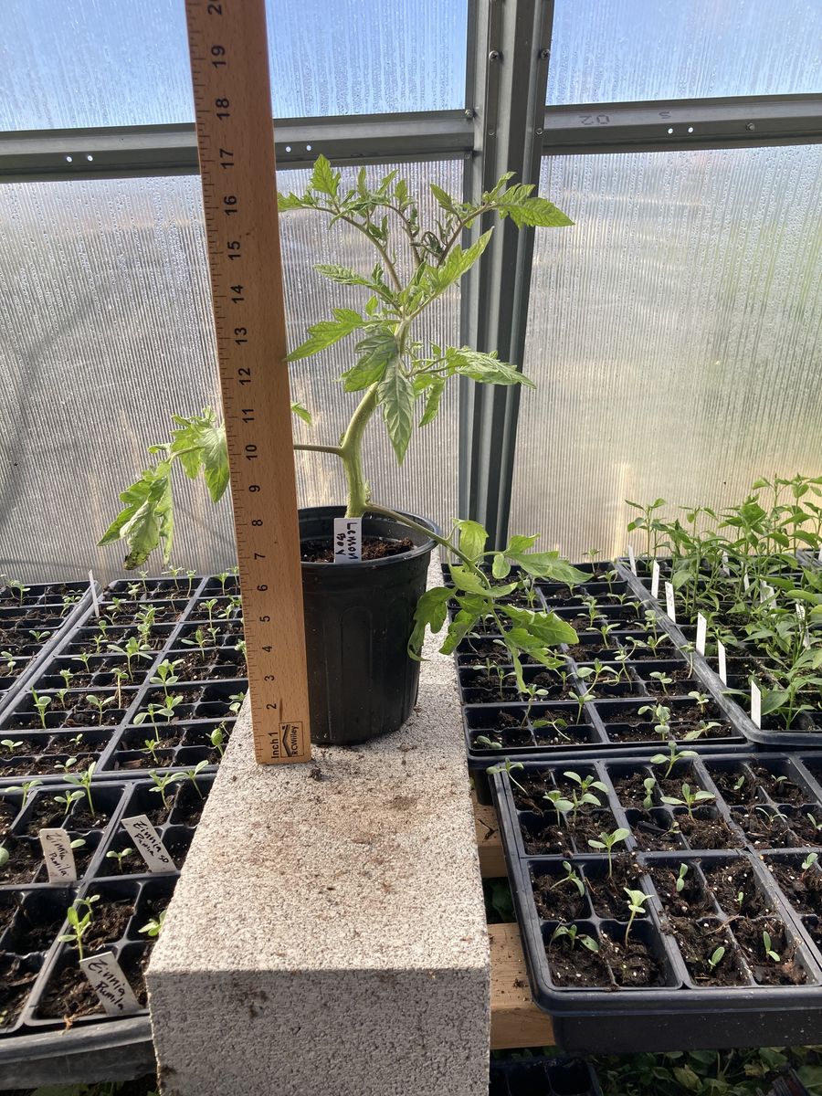 ZelleThese are establish tomatoes in gallon pots. Not just tall but healthy thick stems. Most are blooming and are ready for your yard.