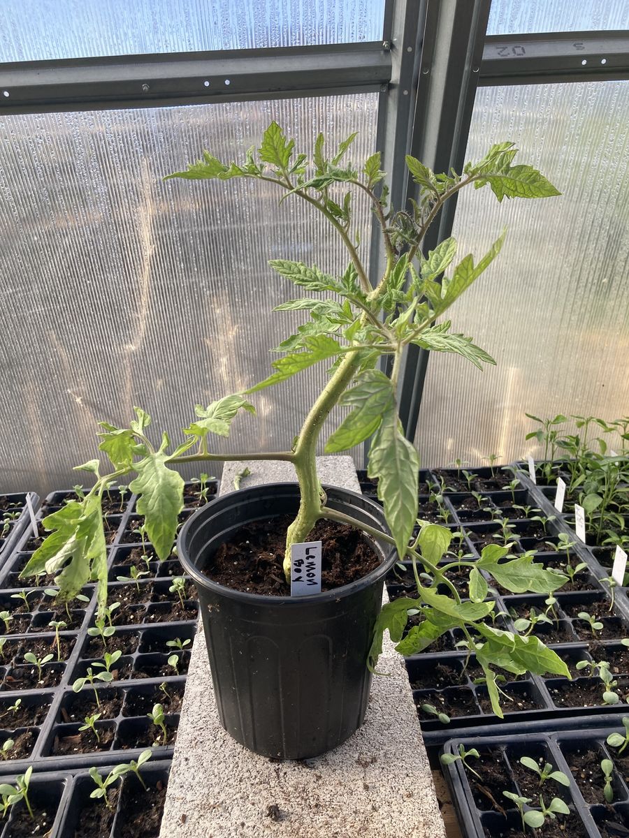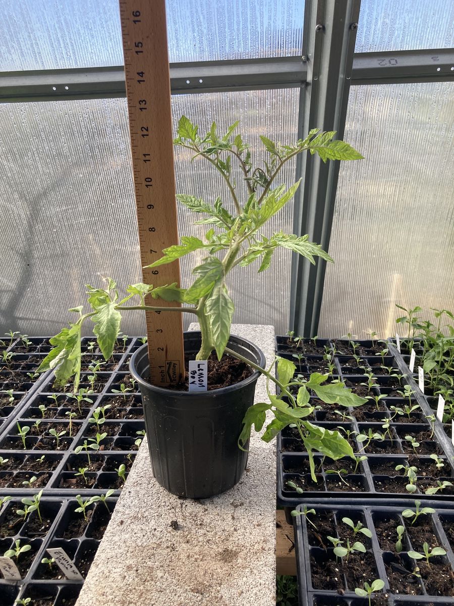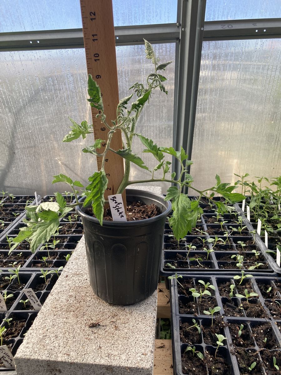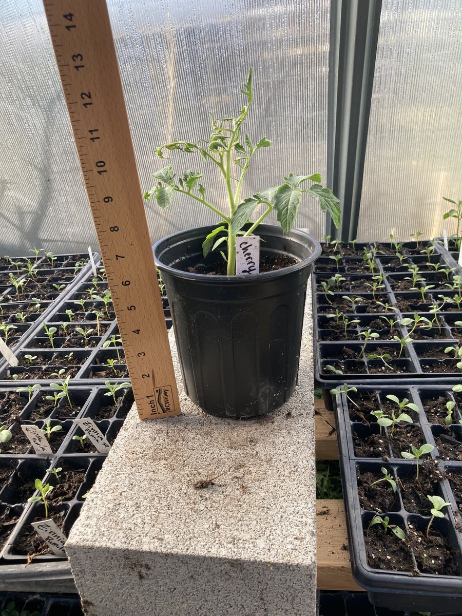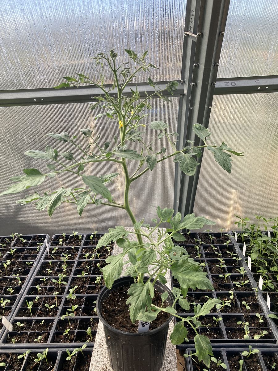 ZelleThese are establish tomatoes in gallon pots. Not just tall but healthy thick stems. Most are blooming and are ready for your yard.