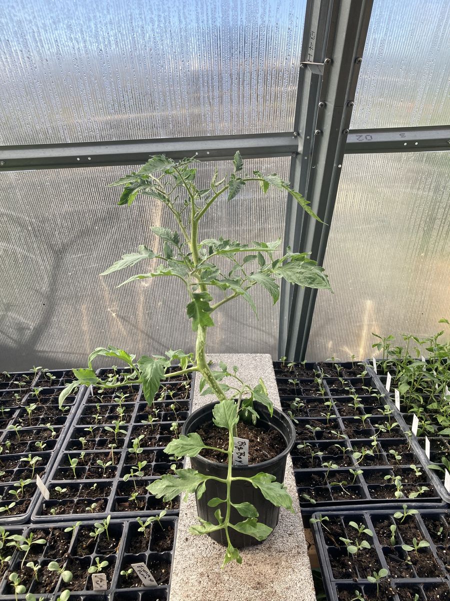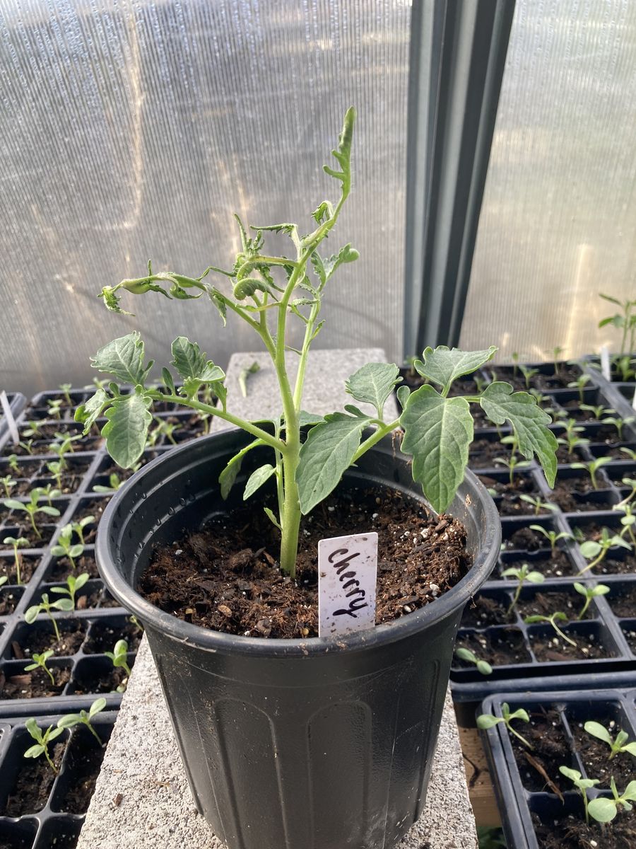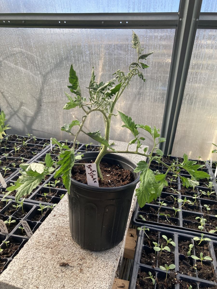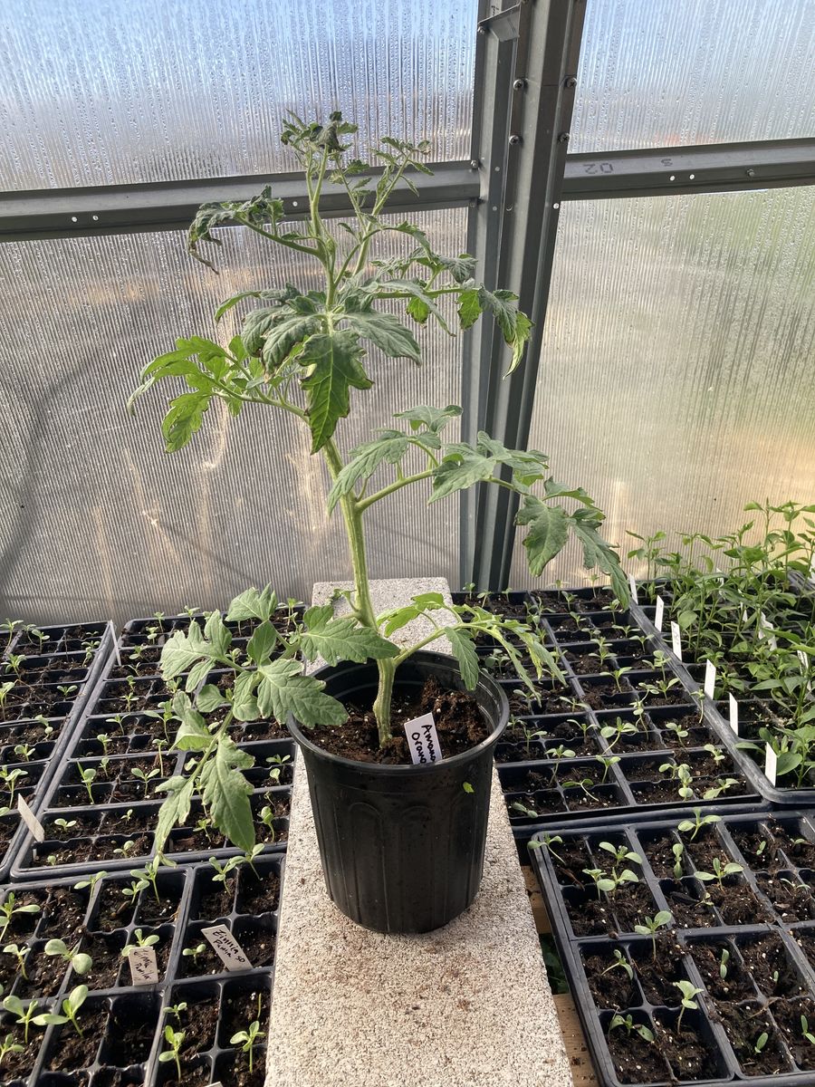 ZelleThese are establish tomatoes in gallon pots. Not just tall but healthy thick stems. Most are blooming and are ready for your yard.