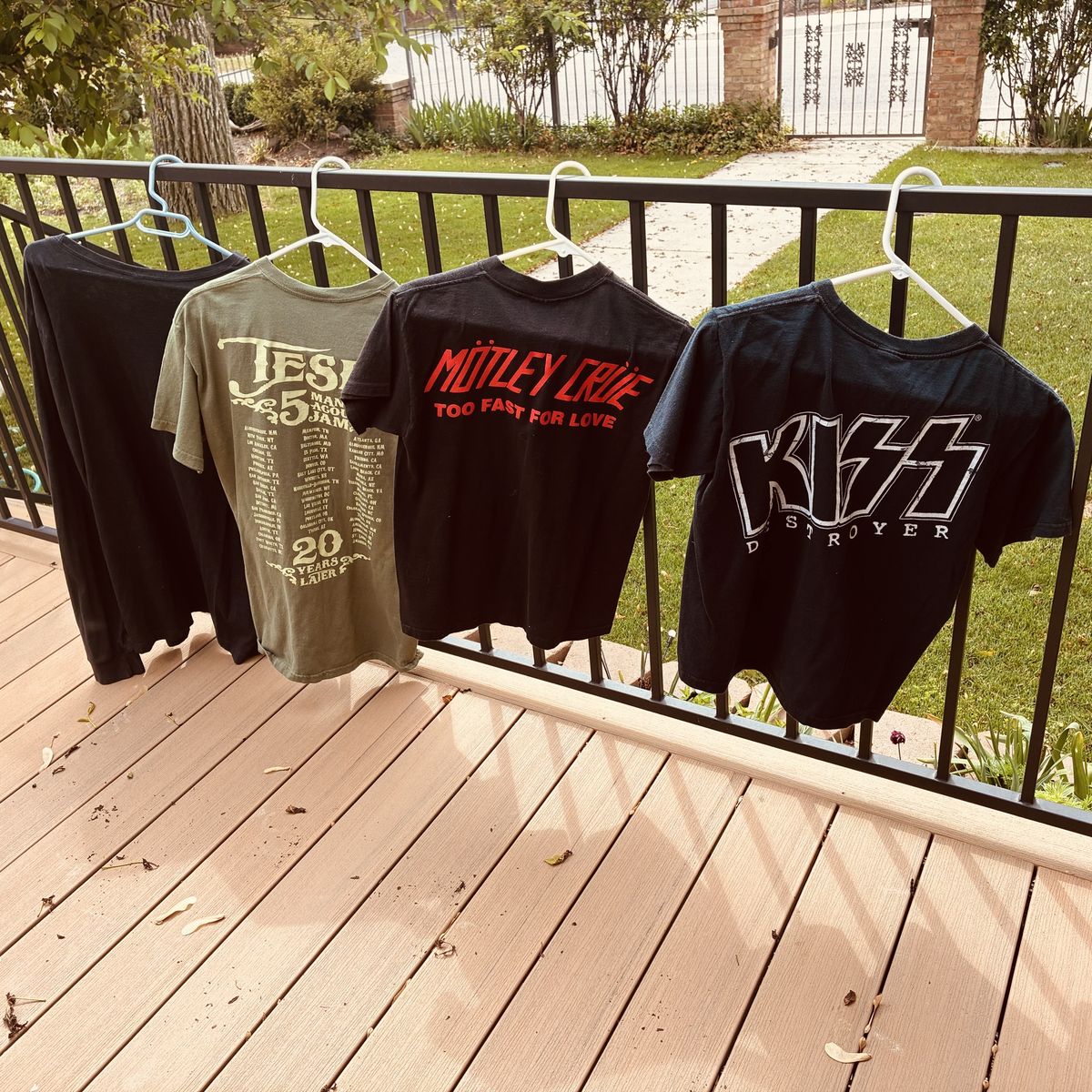 4 shirts with sizes on tags