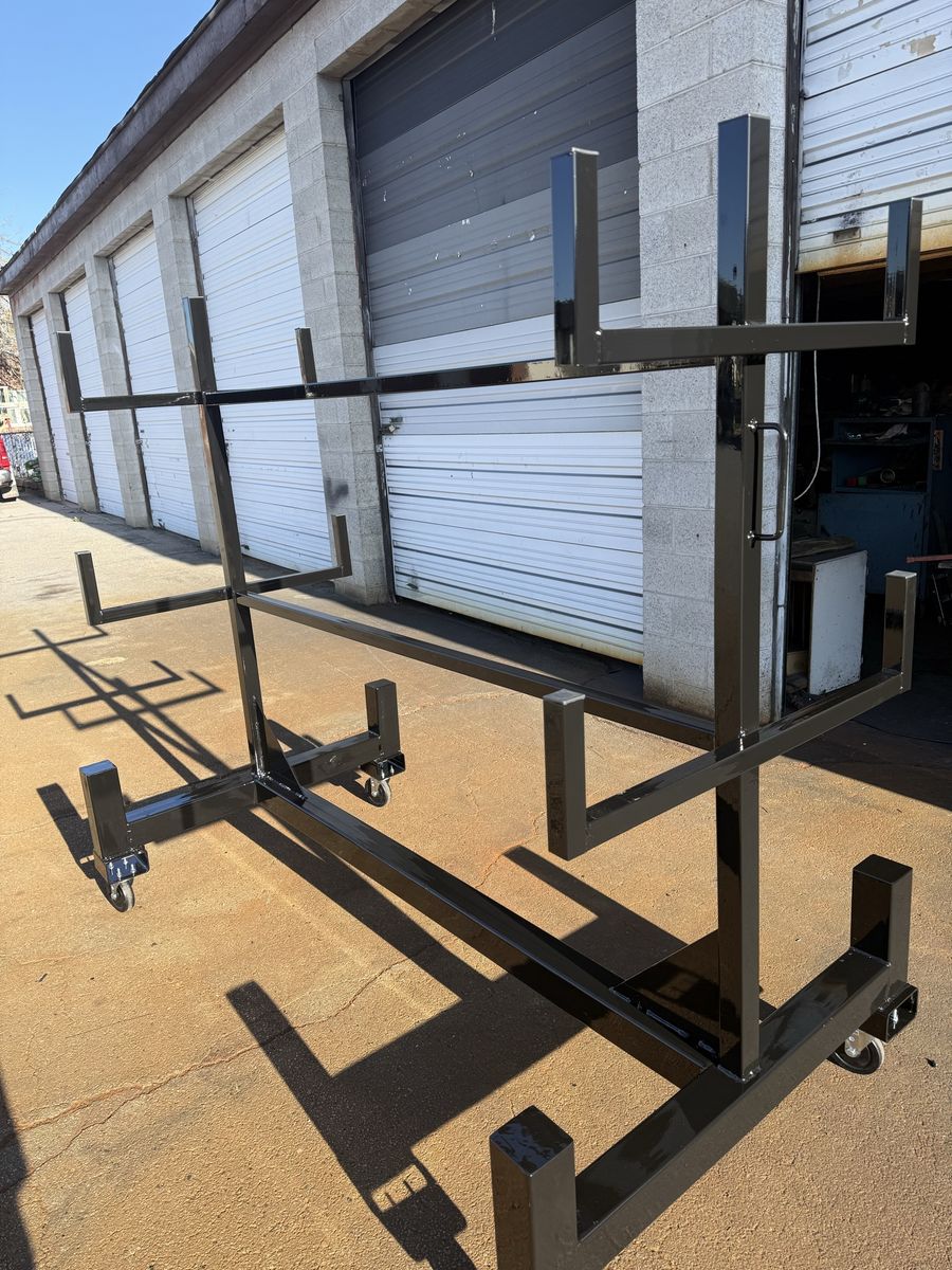 Venmo1320 lb Capacity 6’ x 3’ x 5’ steel rack on 5” swivel casters. Built from 11 & 14 gauge steel with handles for easy movement. Perfect for PVC, metal, or lumber. Custom-built, not store-bought