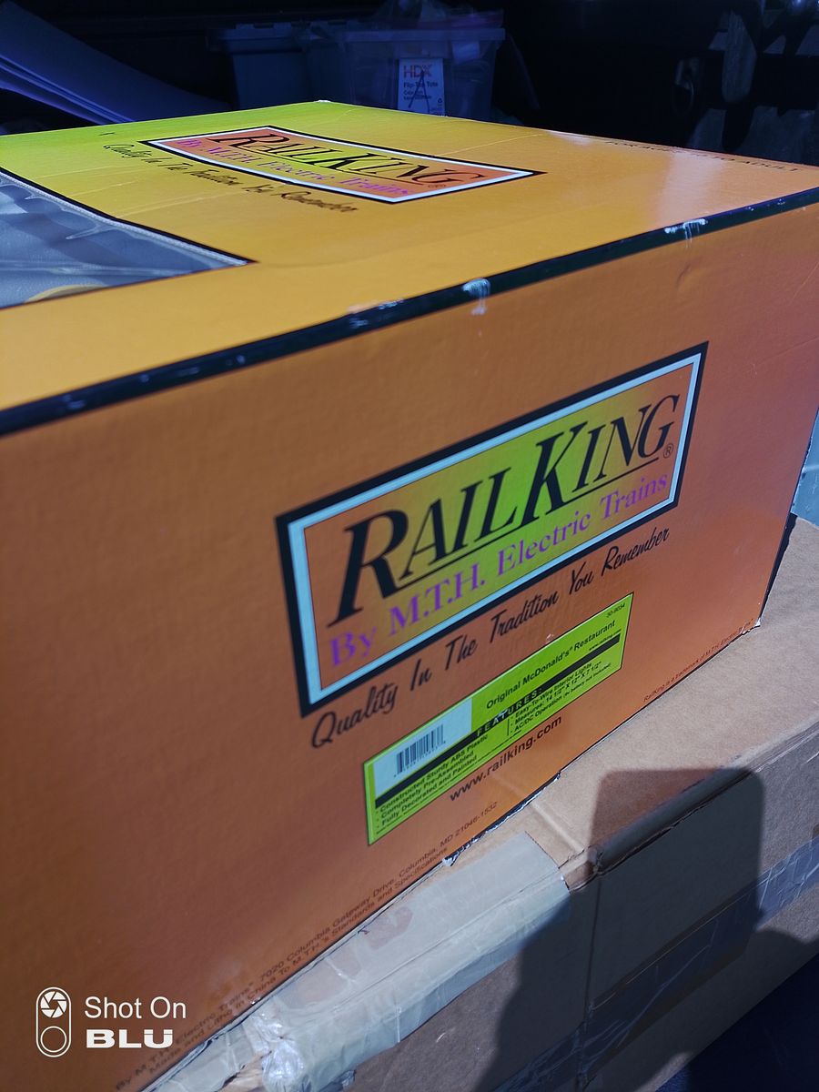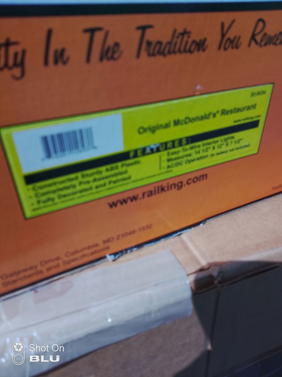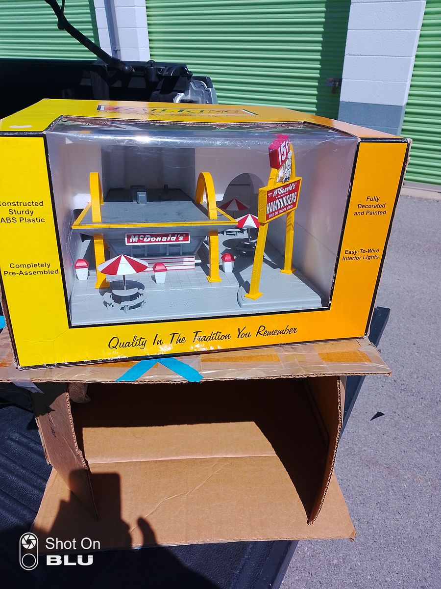 4) MTH RailKing Original McDonald’s Restaurant O Scale Building 30-9034 Lighted New In Box with slight wear to edges and a dent on box top plastic