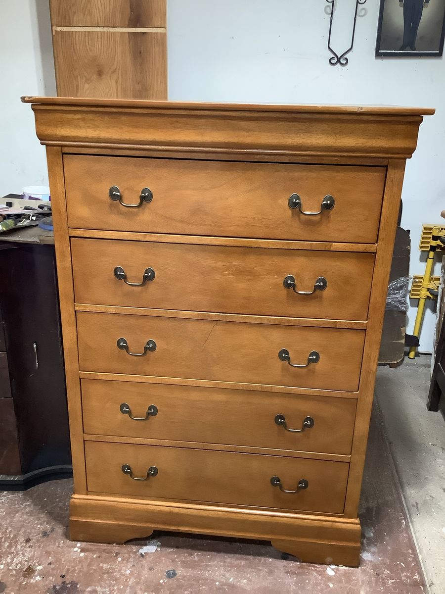Call or text Bill at 801-721-7337. All wood with 5 drawers dovetail finished & in good shape. Measurements are 37w x 52h x 18d. I live in Layton.