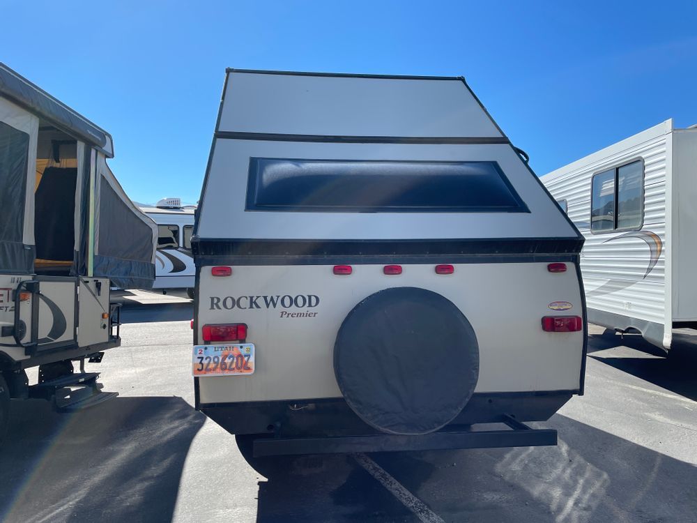 Rockwood Hard Side bumper pull trailer with electric jack. Includes: Front storage and EZ reach-storage trunks on both side of trailer, Booth dinette in the front that folds down to provide sleeping space for one adult or two childern. Refrigerator, 3 Burner range, microwave in the cabinet next to the door, single bowl sink, hotwater heater, Air and fan, Heater. In the back there is a flip up queen bed with storage space under it.