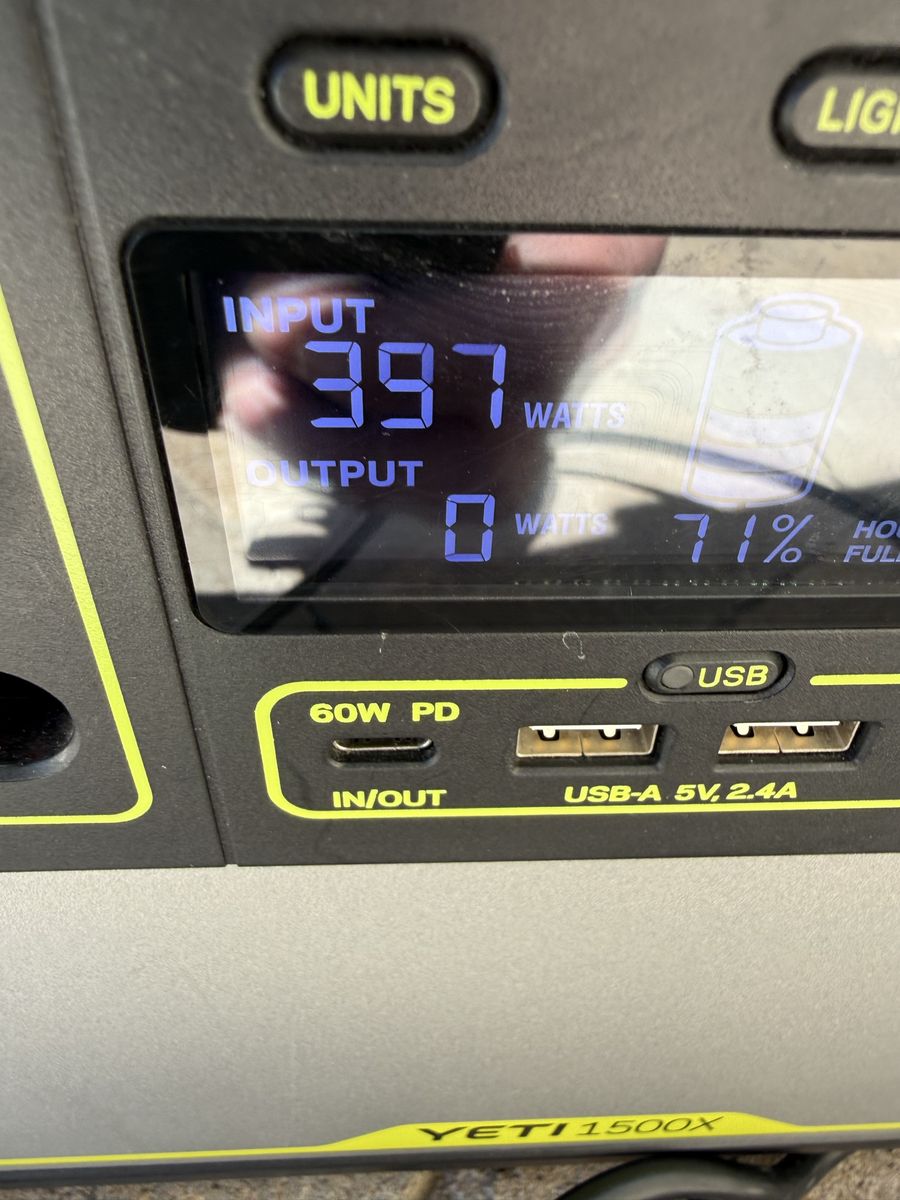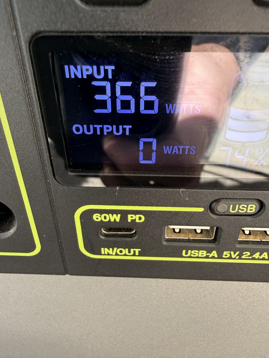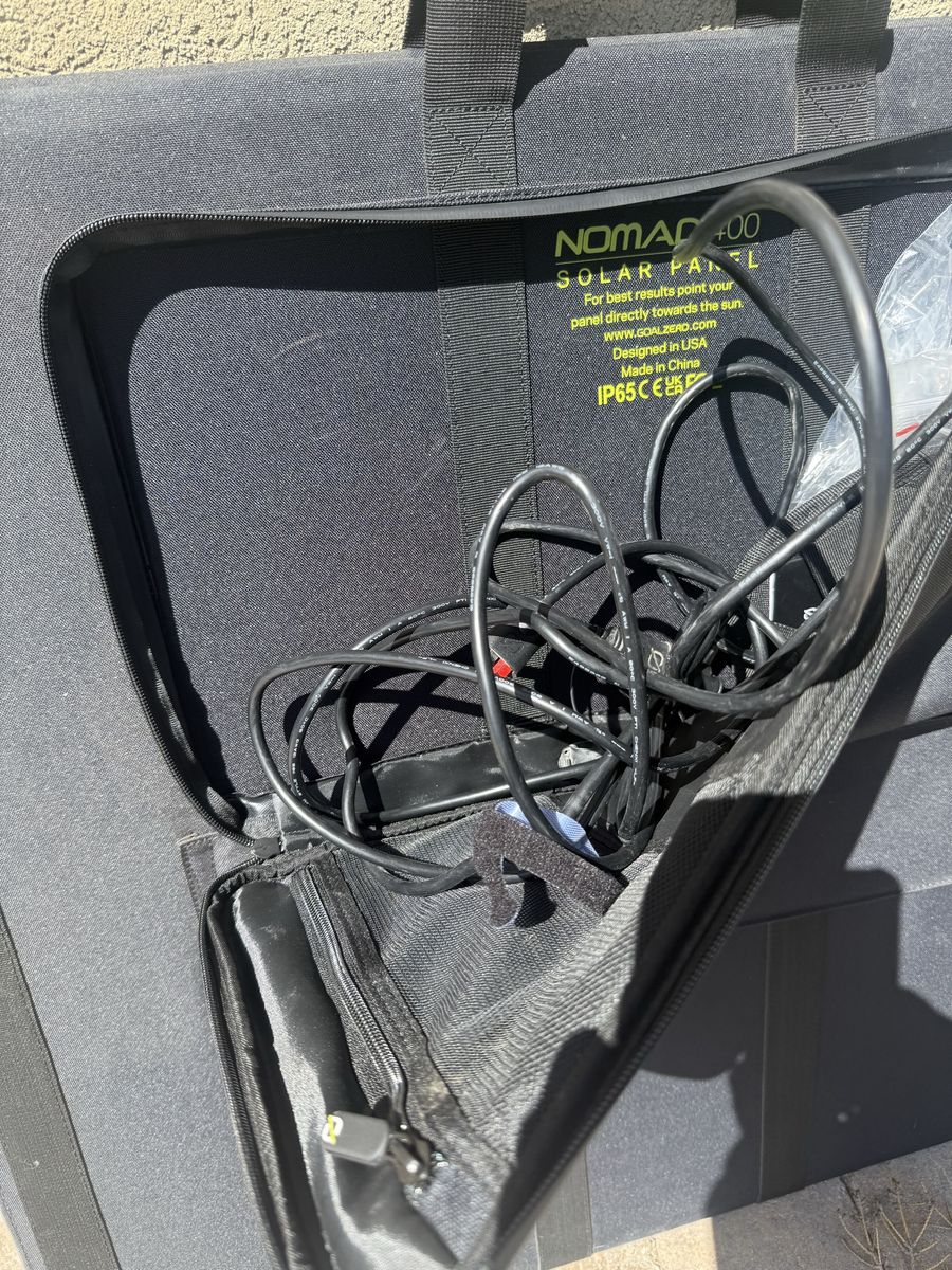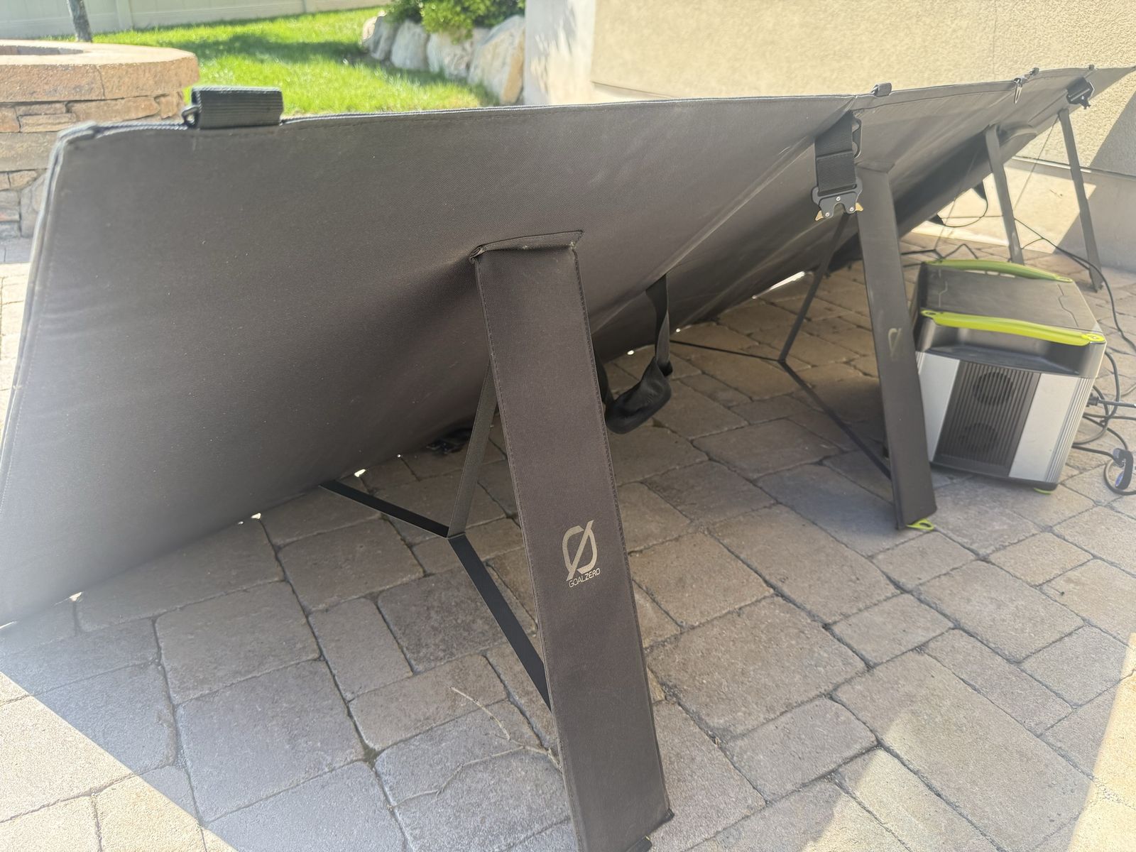 VenmoGreat condition - only used a few times. Folds up for easy transportation. Comes with a 15ft cord for use with Goal Zero Power Stations (1000 or larger). Included pics of the amount of solar input — Panel is rated at 400W but you hardly ever get that amount with any solar due to environmental conditions, angle to sun, etc. But this panel has been excellent. Usually get around 350W on a sunny day. I plugged in around 11:30 this morning and got 397W for a minute or two then settled at around 360W. Excellent product - I am selling this one because I don’t need 2.