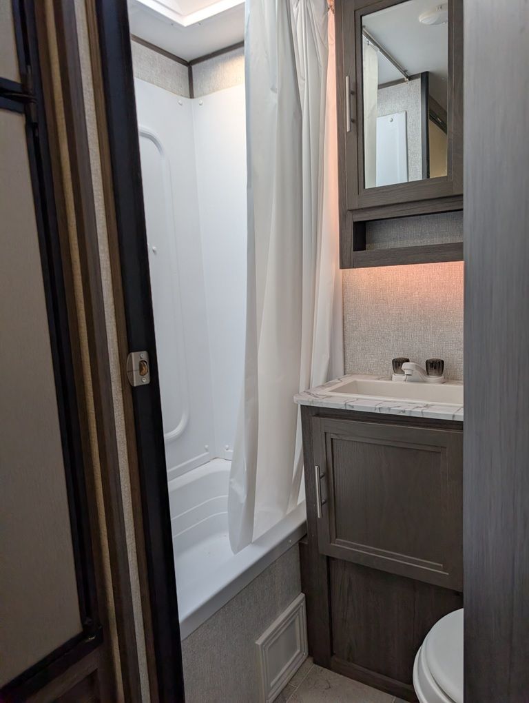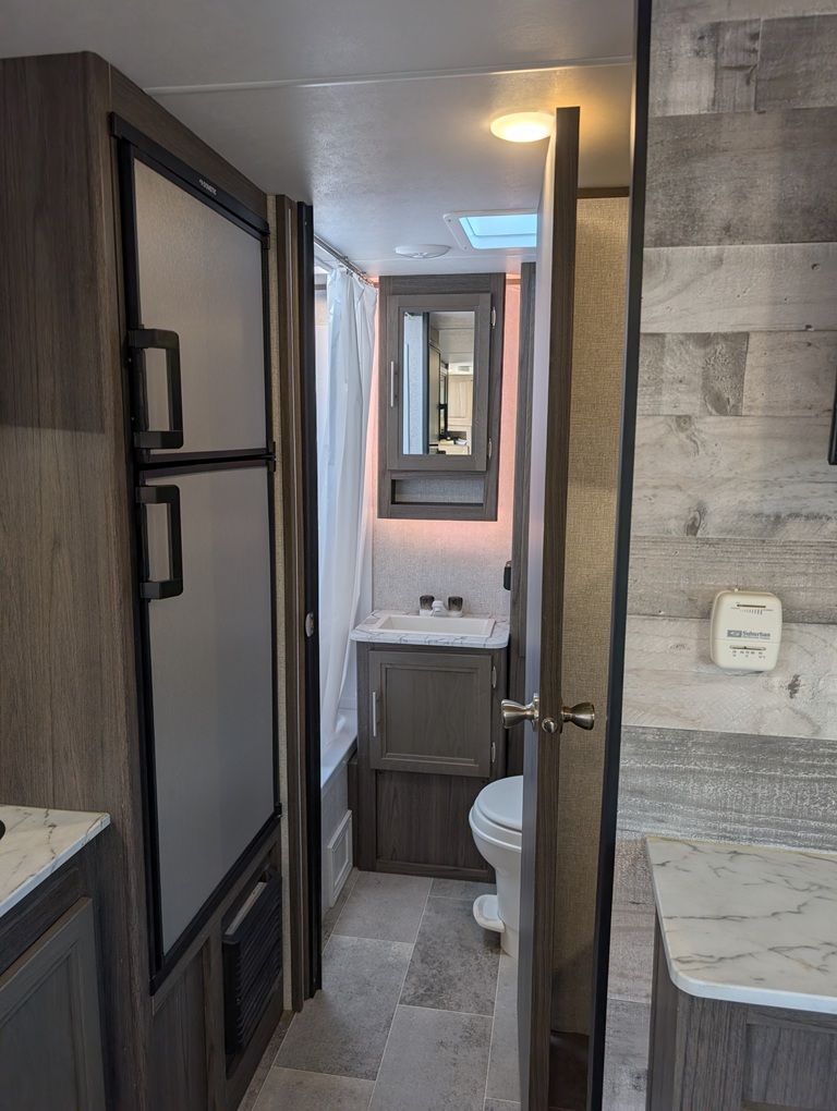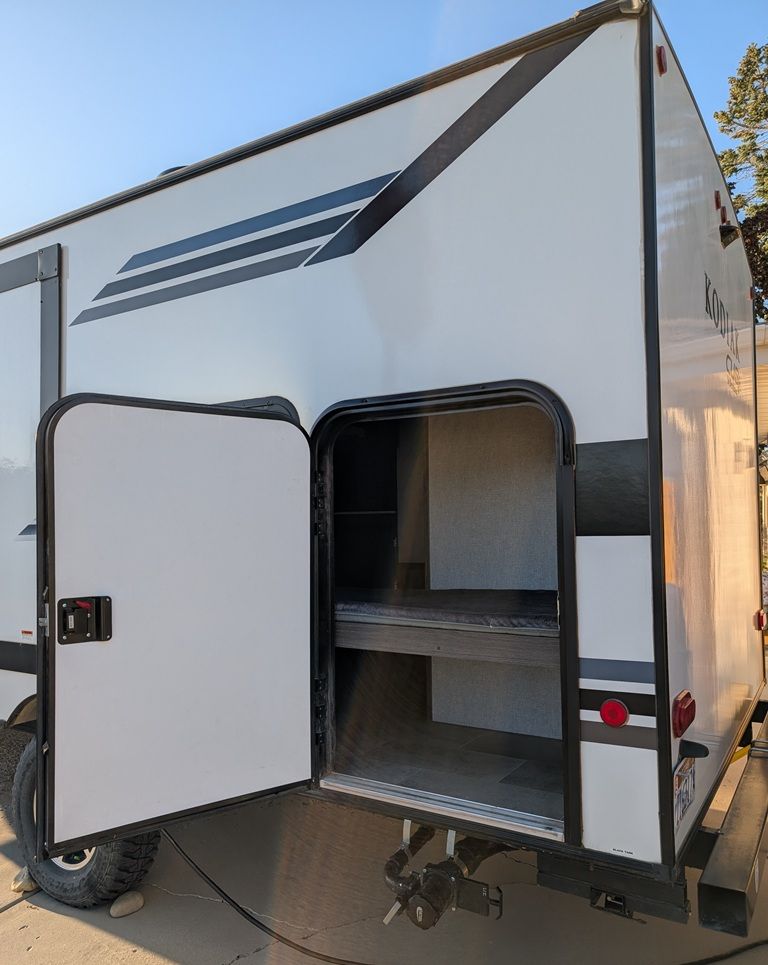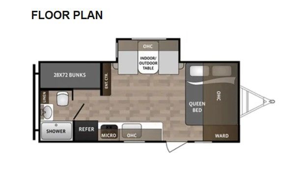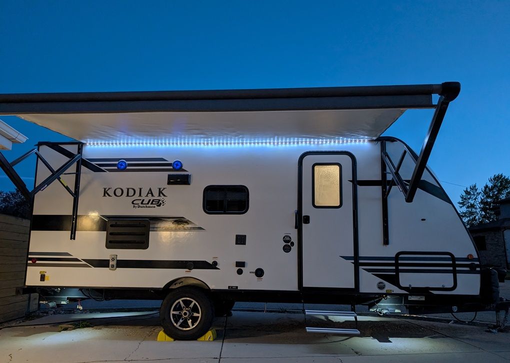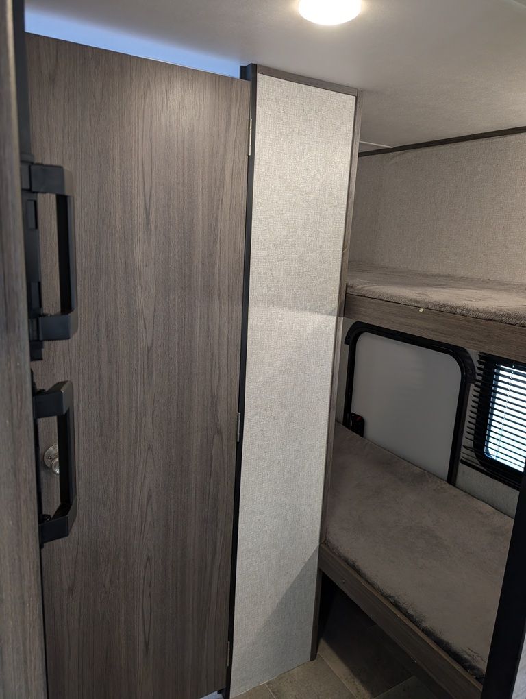 Lightly used, parked in a climate controlled warehouse when not in use. The Kodiak Cub 198BHSL is a lightweight travel trailer designed for families, sleeping 5–6 people with a rear bunkhouse, a front queen bed, and a single slide-out dinette. Key features include a rear bath, a 11-cu. ft. 12-volt refrigerator, and a "Pac-n-Play" exterior door for easy cargo access and large pass-through front storage. 52 gallon fresh, 39 gray and 28 black. It is designed for extended-season camping, featuring a fully enclosed and heated underbelly and torsion axle. It also has electric stabilizer jacks.
