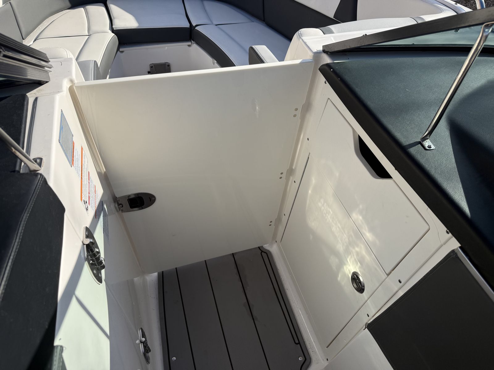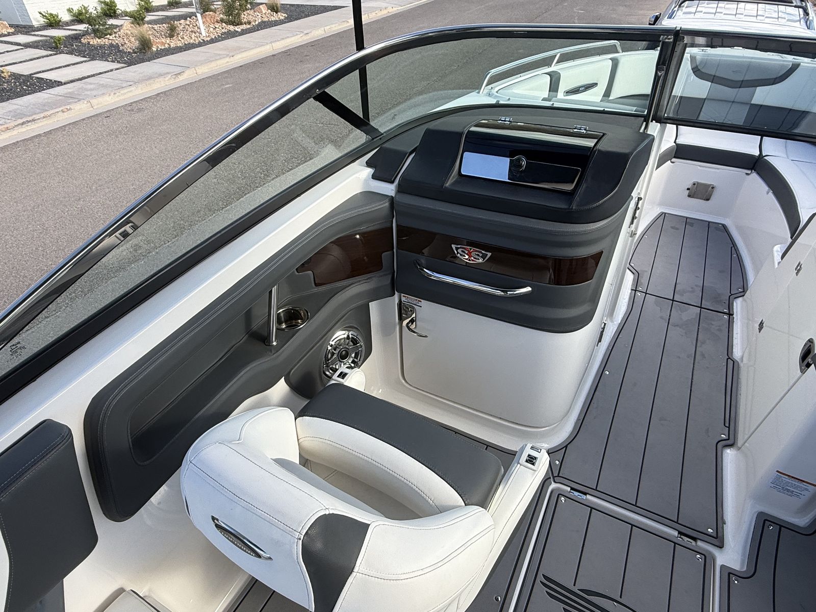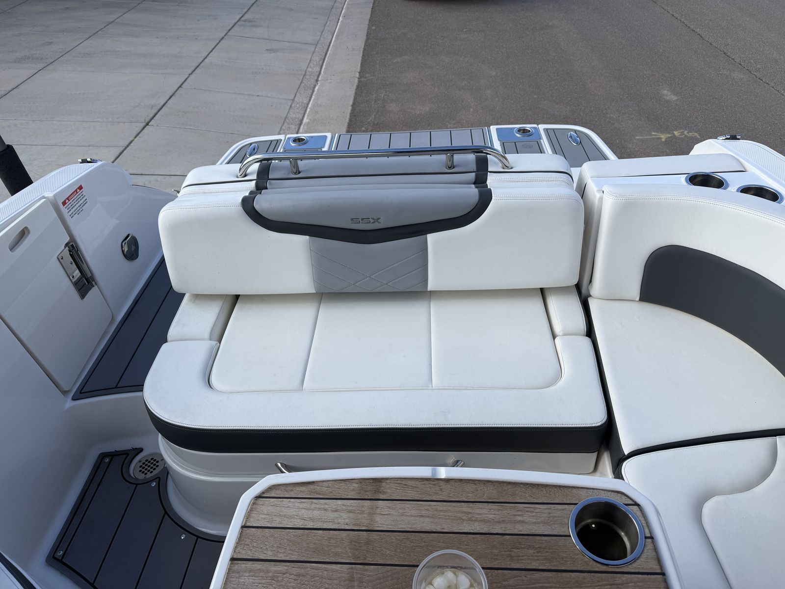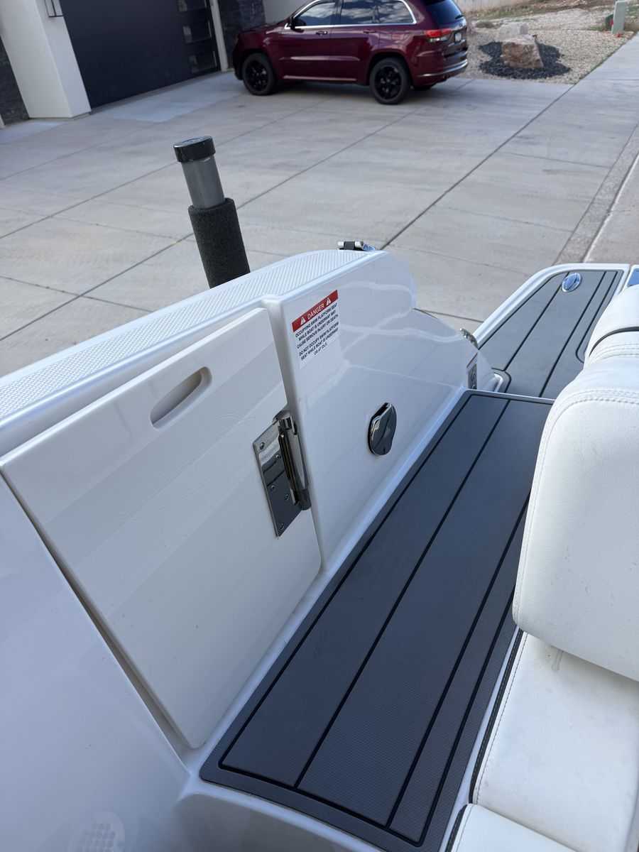 With an overall length of 28', 287 SSX is rapidly becoming a trendsetter within the boating world. Sporting an open and spacious cockpit design outfitted with hinged storage and hand stitched vinyl seating along with the dual 7" touch screen displays embedded within the helm, the 287 SSX is here to make a statement in luxury boating.