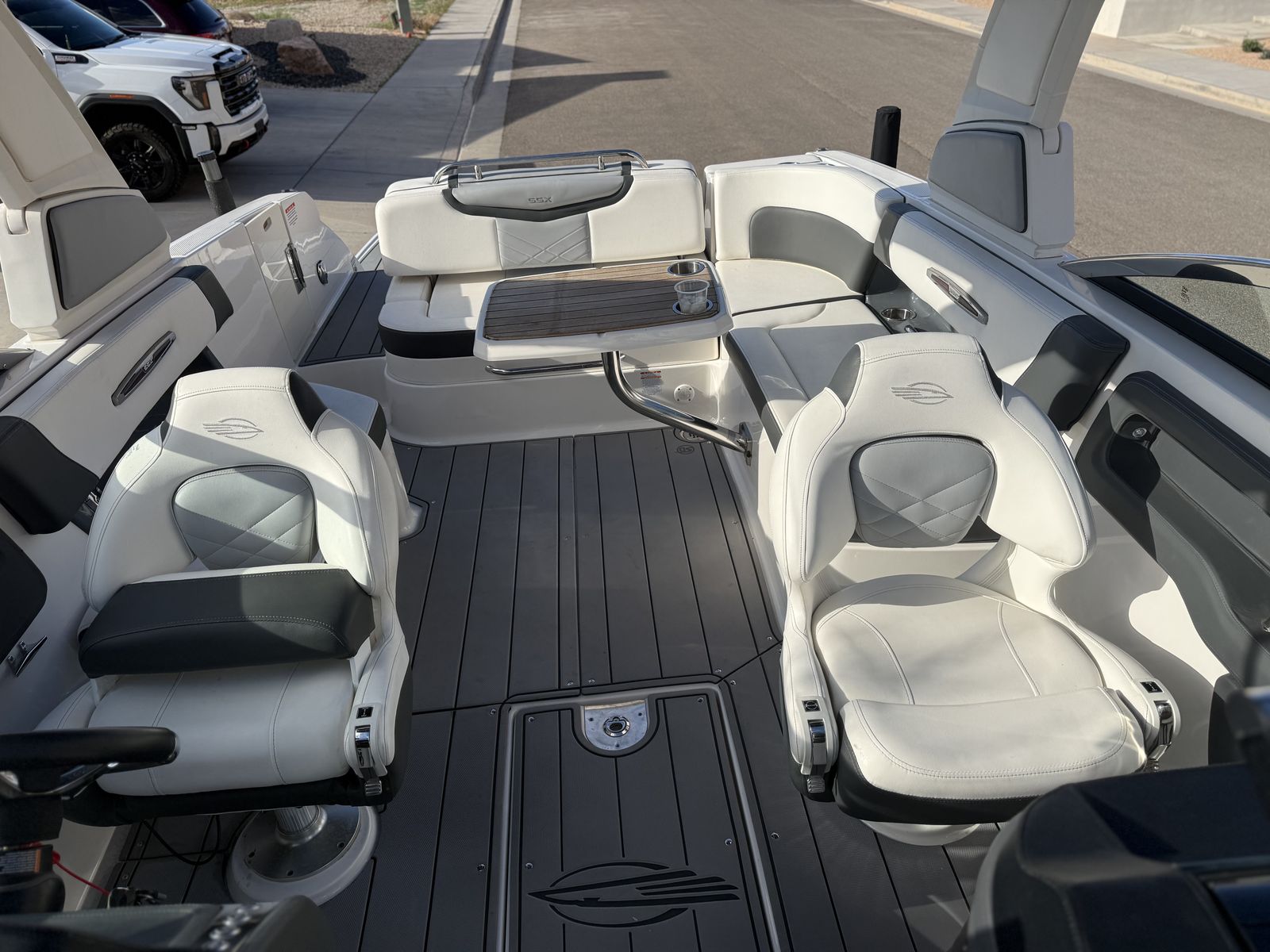 The Chaparral 287 SSX is the definition of a luxury bowrider — blending upscale appointments, performance V-8 power, and day-boat versatility in one sleek package. This 2023 example is loaded with premium options, meticulously maintained, and ready for both freshwater escapes or coastal adventures.