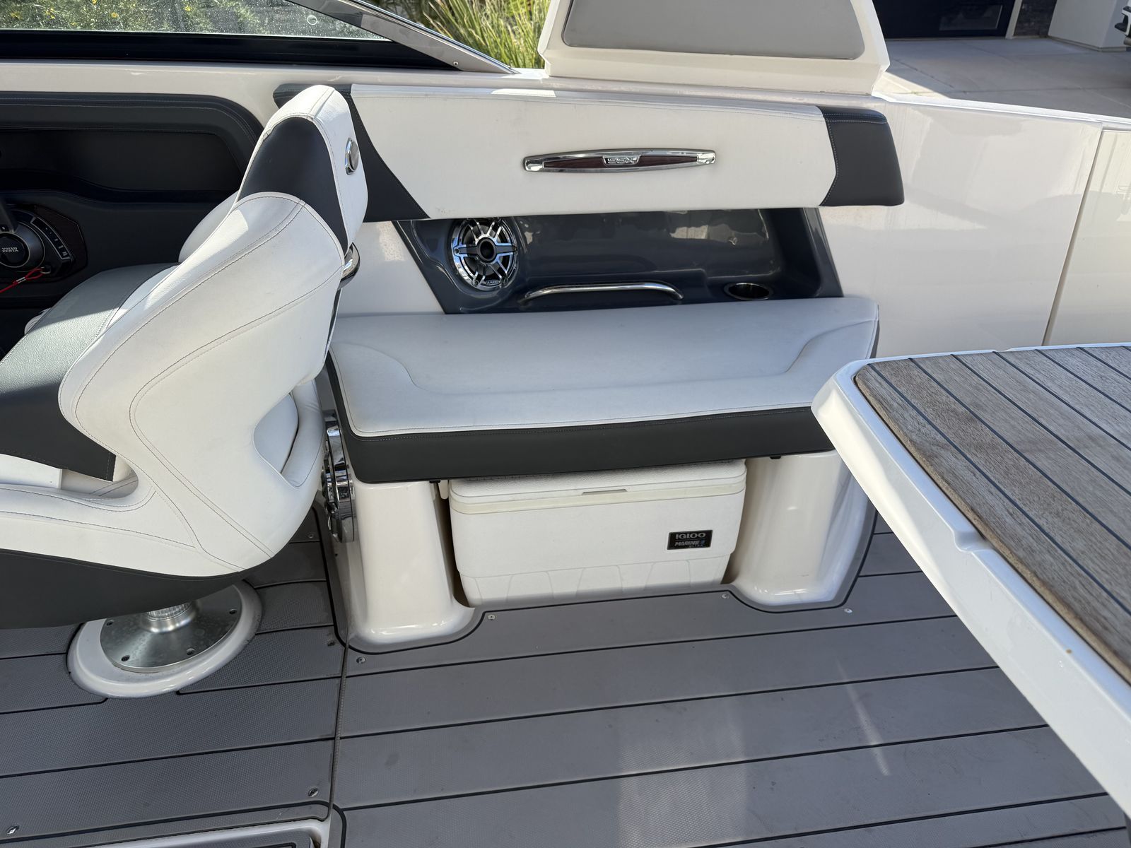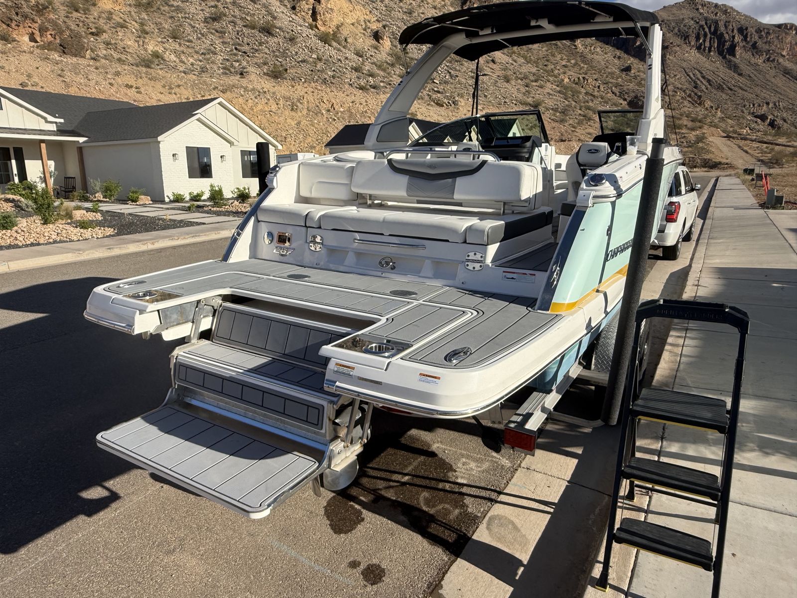 The 2023 Chaparral 287 SSX is a luxury bowrider that impresses owners with its spacious cockpit, high-quality materials, and advanced technology. The dual 7-inch touchscreen displays and custom hand-wrapped helm consoles enhance the boating experience, while the Infinity Power Step swim platform simplifies water access. Owners appreciate the comfortable seating, including the aft bench with a reversible backrest that converts to a sun lounge, and the insulated bow ice chest for convenience.