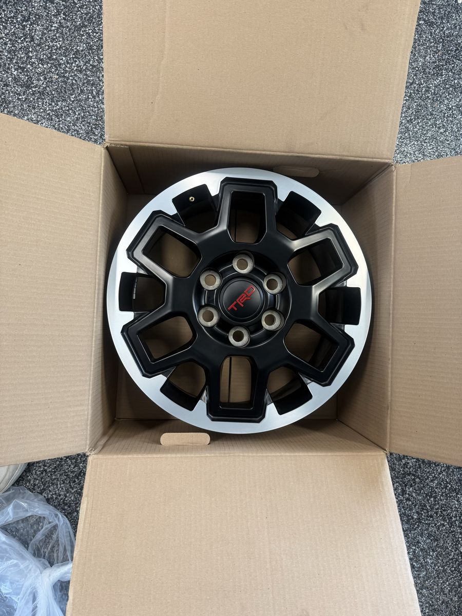 Set of 4 OEM Toyota TRD Off-Road alloy wheels (18”) taken off a brand new 2026 Tacoma with only 88 miles.