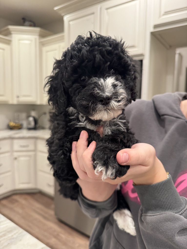 ApplePayMeet Rainier! One of the SWEETEST puppies ever! She is the best of snuggle bug and playmate. Her curly black hair literally shines and is so soft and silky. 🥰