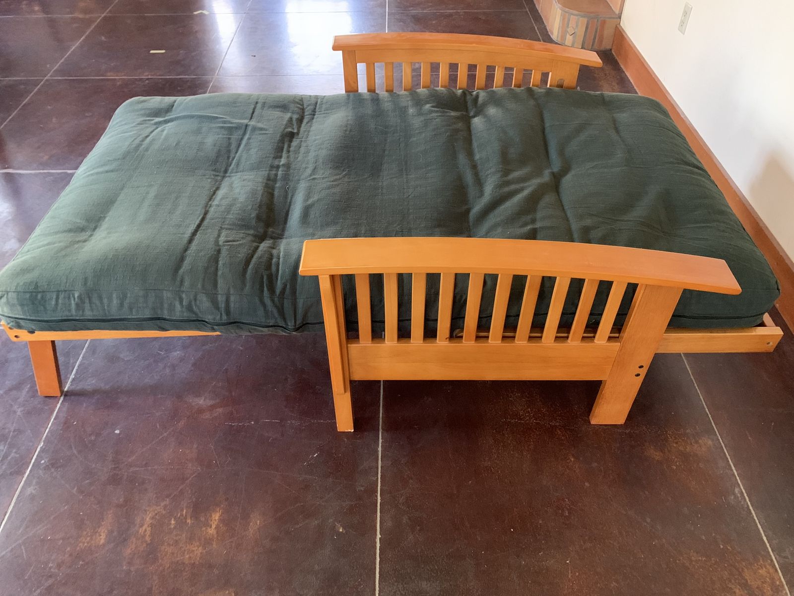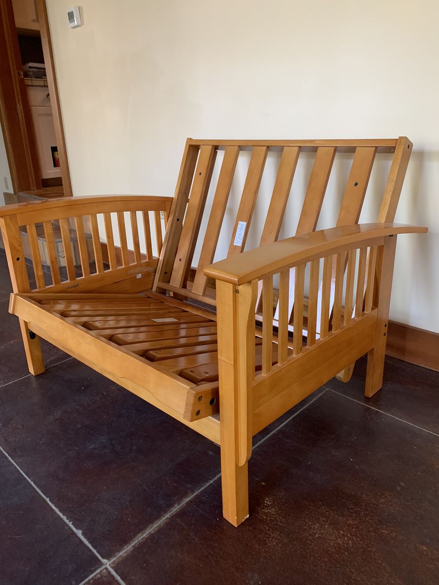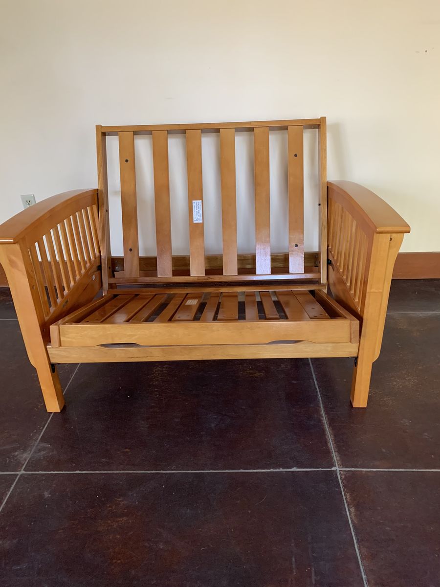 VenmoFuton couch-bed frame and futon. Wooden frame has nice finish and folds down to make a twin bed. Used but in good conditon. Located in Smithfield, near Logan.