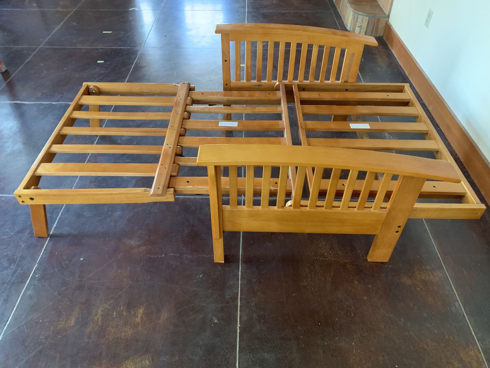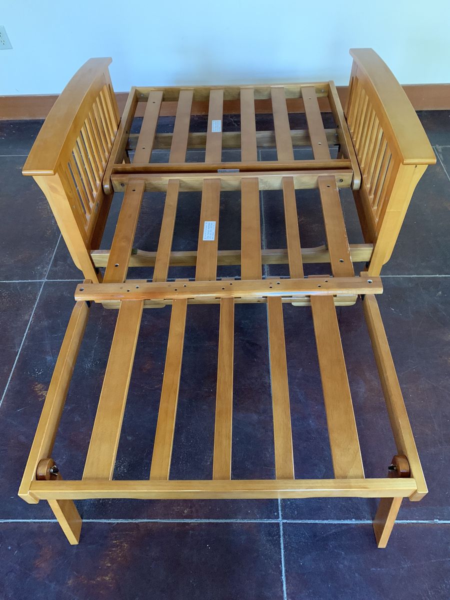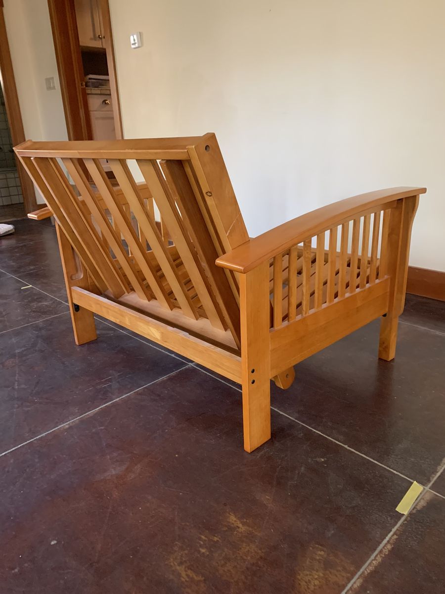 VenmoFuton couch-bed frame and futon. Wooden frame has nice finish and folds down to make a twin bed. Used but in good conditon. Located in Smithfield, near Logan.