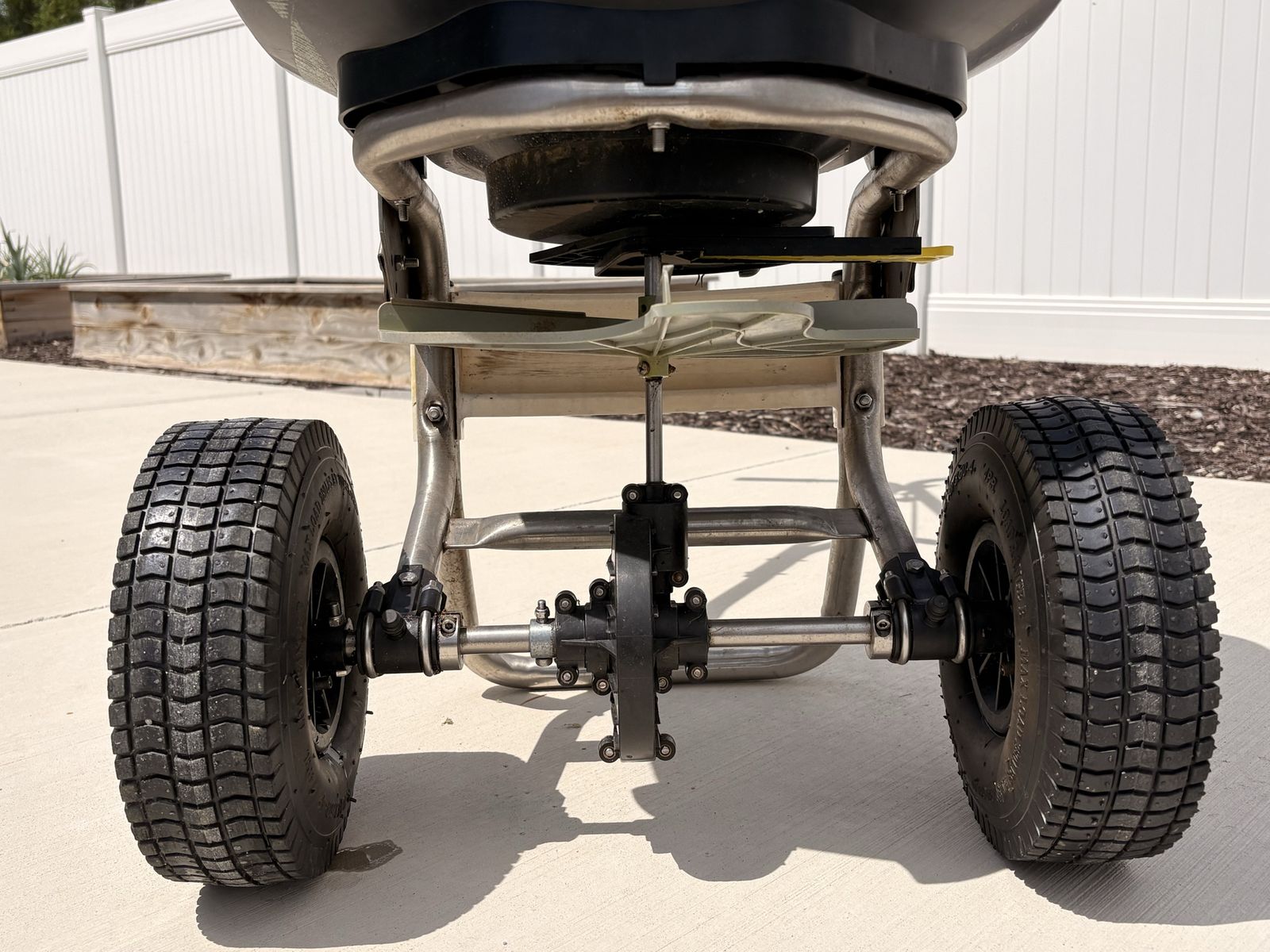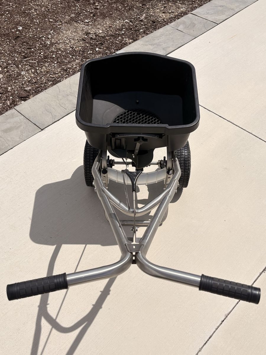 ApplePayLightly used professional grade fertilizer spreader from Ewing Outdoor Supply.