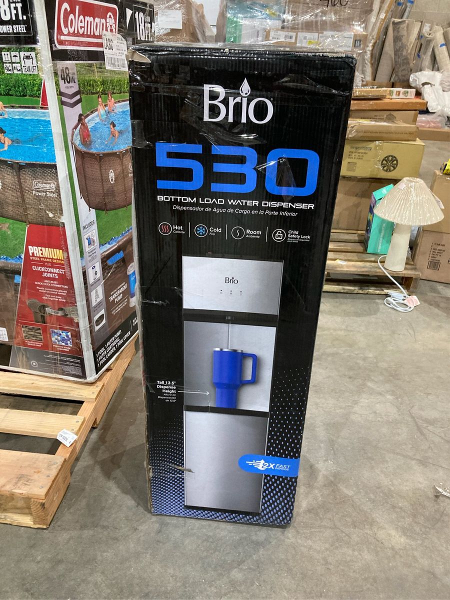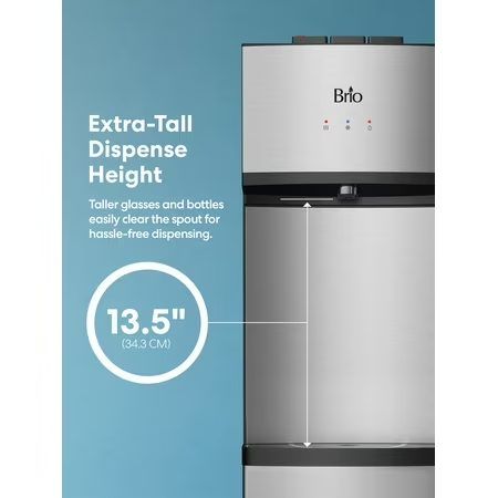 Brio 530 Stainless Steel Energy Saver 5 gal Bottom Loading Water Cooler Brio 530 Stainless Steel Energy Saver 5 gal Bottom Loading Water Cooler Modern, durable, and easytouse design with a slim profile of 11.81"W x 43"H and a total weight of 45 lbs Plugandplay installation takes just minutes with no tools or plumbing required, making it ideal for renters and nonplumbed spaces Easy bottom loading feature allows you to effortlessly load a 5gallon bottle without struggling with heavy containers Concealed bottle design maintains a sleek and modern appearance, reducing the need for singleuse plastics Tritemp functionality offers hot, room, and adjustable cold water selections for versatile hydration options Impressive 13.5" dispense height accommodates tall bottles and glasses without awkward maneuvering Fast flow rates of 1.5 L/min for hot water and 2.7 L/min for cold water ensure quick dispensing Foodgrade 304 stainless steel reservoirs maintain greattasting water Removable drip tray catches stray drips, keeping the dispense area tidy LED notification lights indicate when water is heating or cooling, and an empty bottle indicator alerts you when supplies are low Night light softly illuminates the dispense area for easy refills, even in low light conditions
