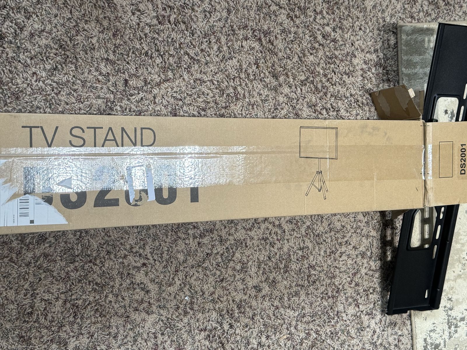 VenmoBlack TV stand. Has a sturdy tripod base. Comes with a mounting bracket for your TV.