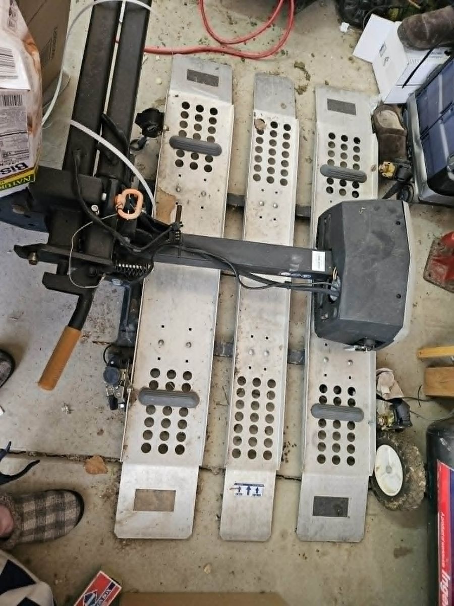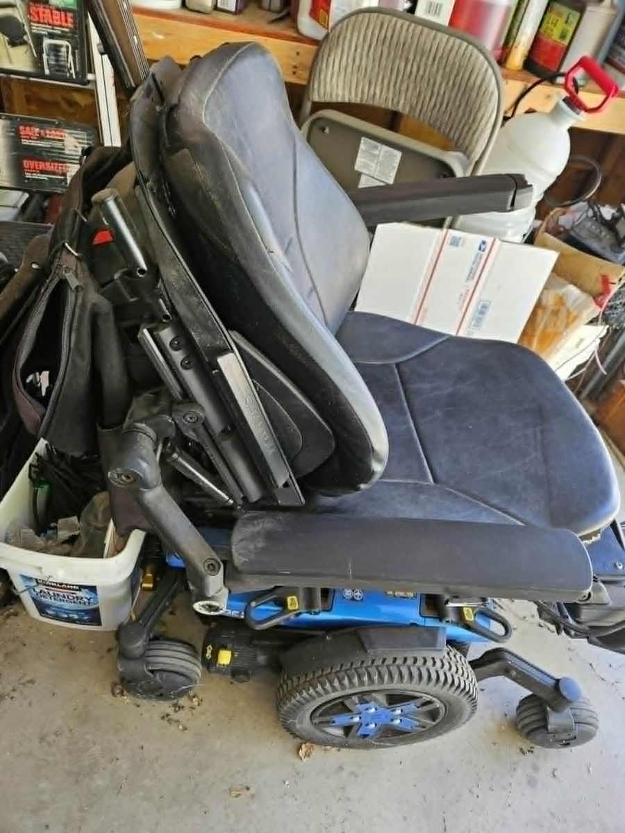 Electric Wheelchair with hitch mounted carrier, this was given to us but never used. Have charger for chair, but no manual for it
