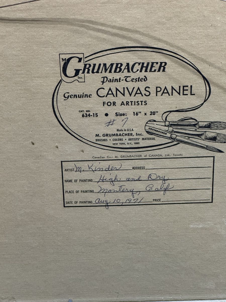 VenmoCool vintage painting by M. Kinder. Painting is titled 'High and Dry' and has a scene with a boat named 'Kristina' at 'Monterey Boat Works' in Monterey, California. Dated August 10, 1971. Painting size is 16x20 inches. Has a nice wooden frame.