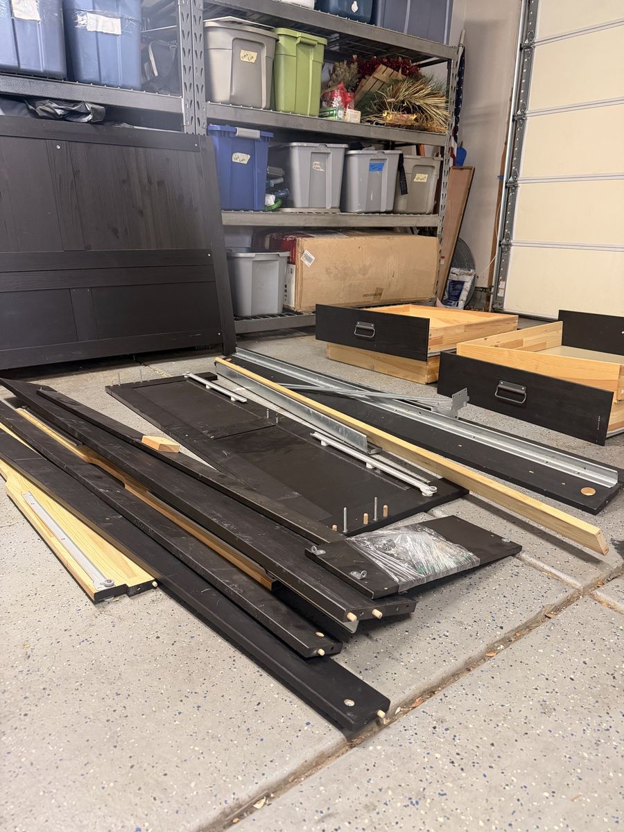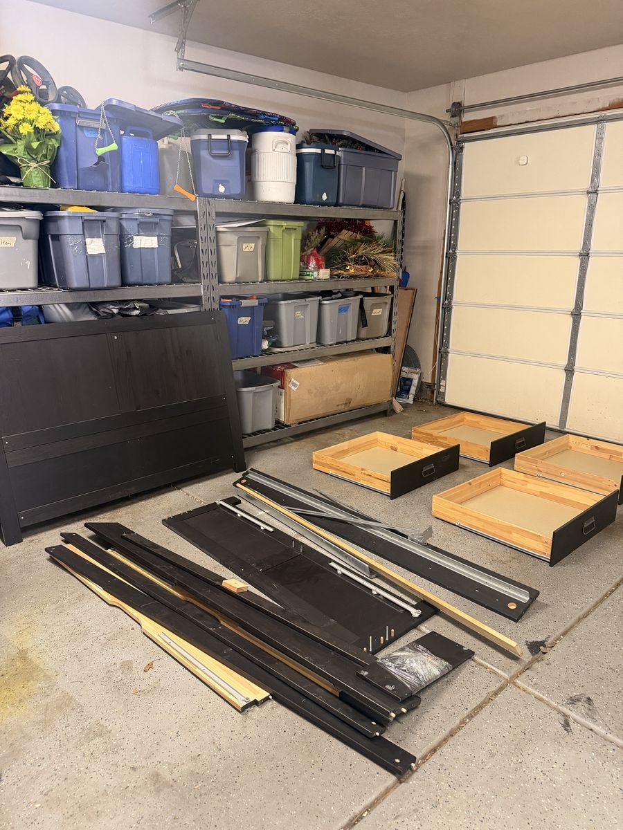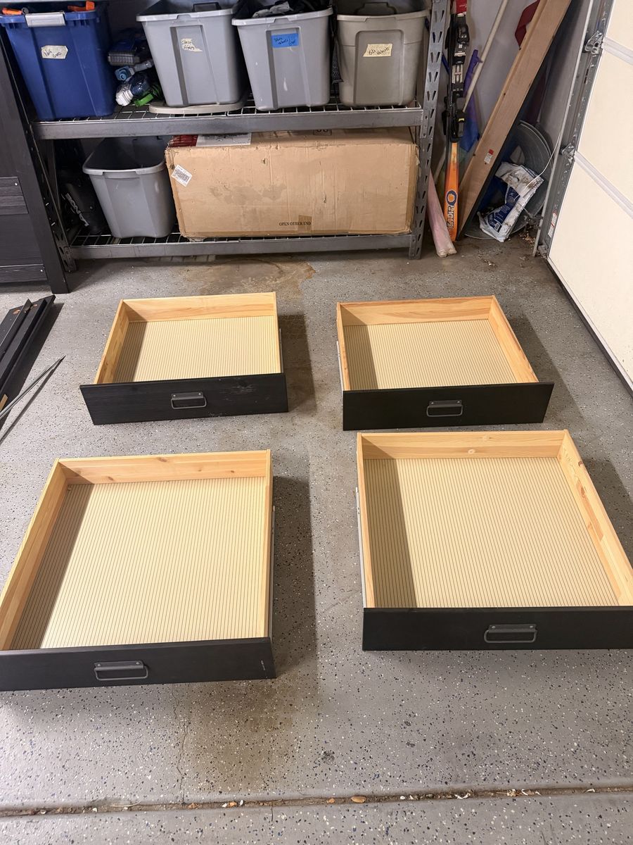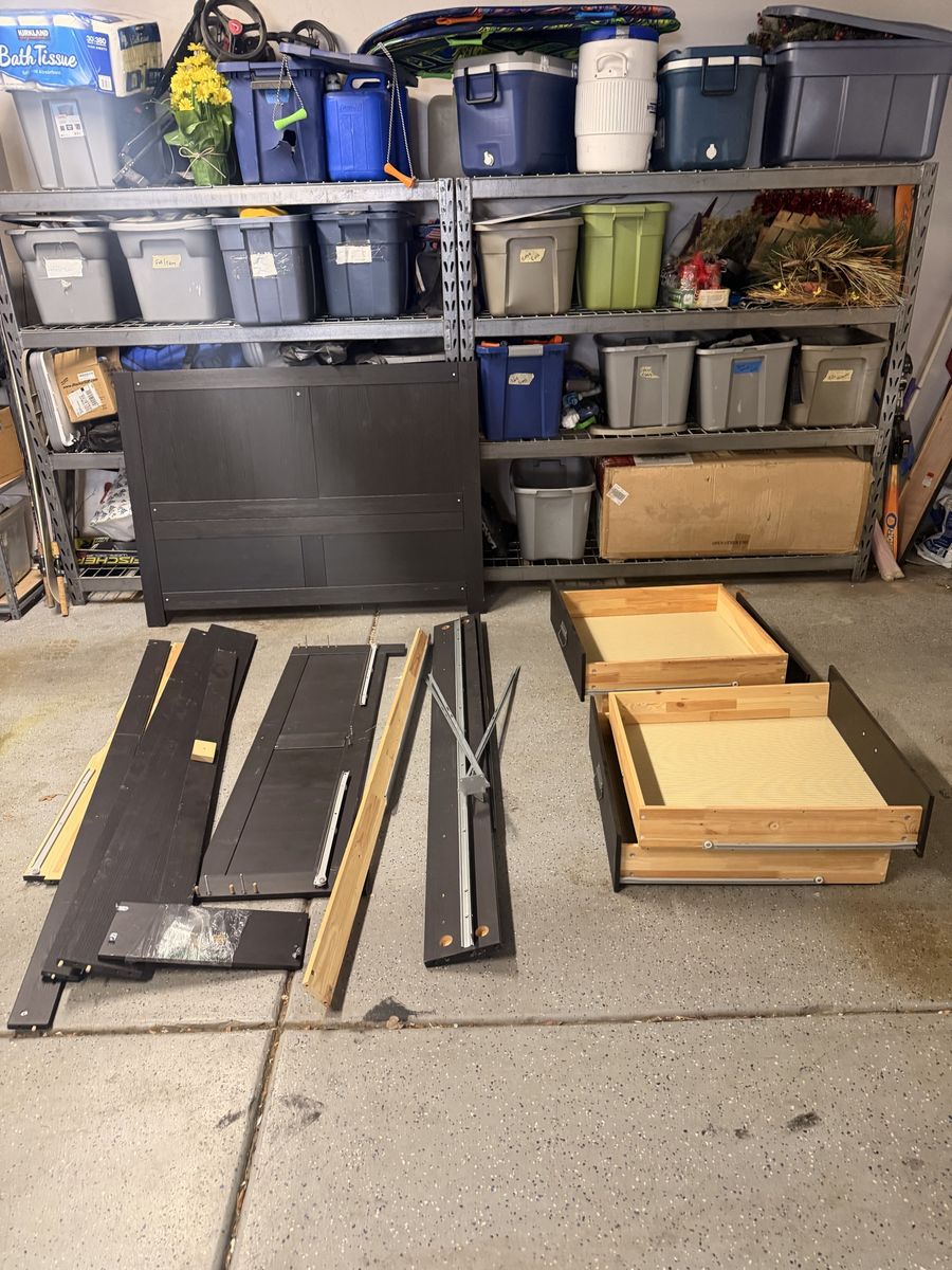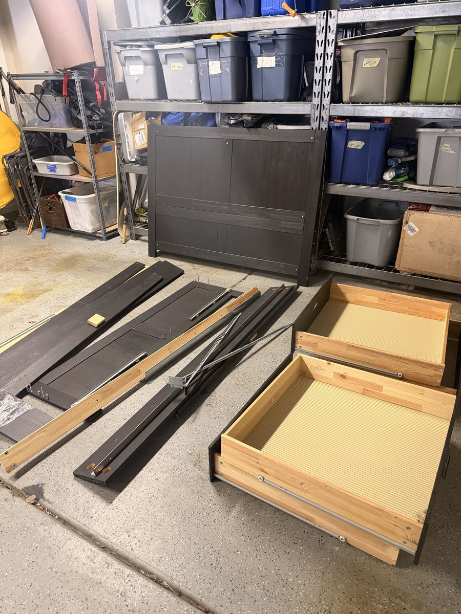 ZelleSelling a nice IKEA bedframe! This is a pine wood frame with 4 under-bed drawers. I believe it’s a queen size. Listed as a FJELL, which is discontinued. Doesn’t come with instructions, but you can easily find them online. Got it from a friend and no longer need it, as far as I know it has all the pieces. Open to offers.