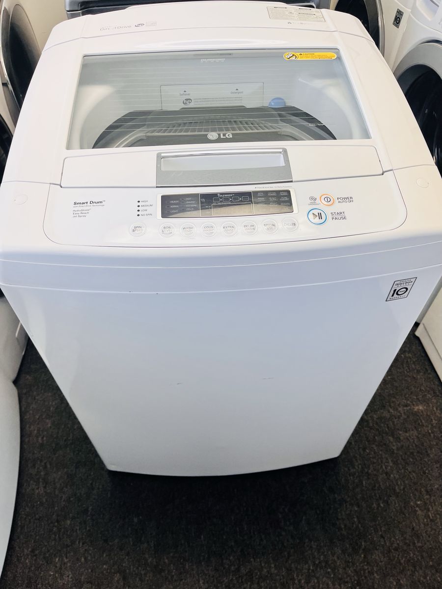 Very nice LG top load washing machine in excellent condition and very clean, it has a huge 5.2 cu ft capacity tub with no agitator but an impeller for bigger loads, very reliable machine. Comes with a 45 day warranty. Only $240 I can deliver and install for a little extra. Call 8015403075