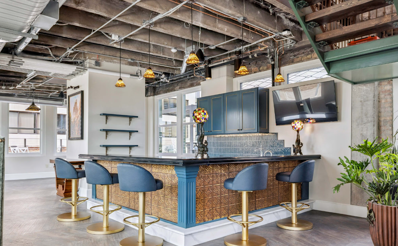 Work in bright, modern offices with tall ceilings, natural light, and super-fast WIFI. Enjoy a professional setting perfect for startups, attorneys, therapists, and IT professionals alike. Commute easily with nearby Trax stations and convenient parking options.