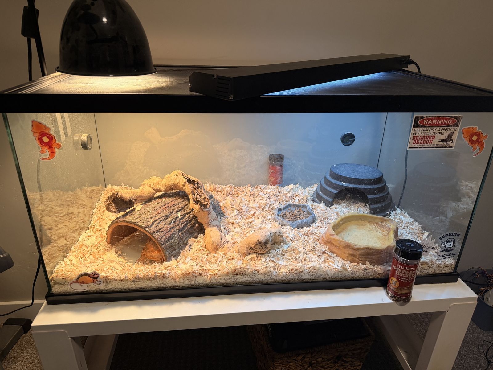 ApplePayBearded dragon , 2 years old. Very nice. Comes with enclosure and lights and accessories. We just can’t keep him anymore.