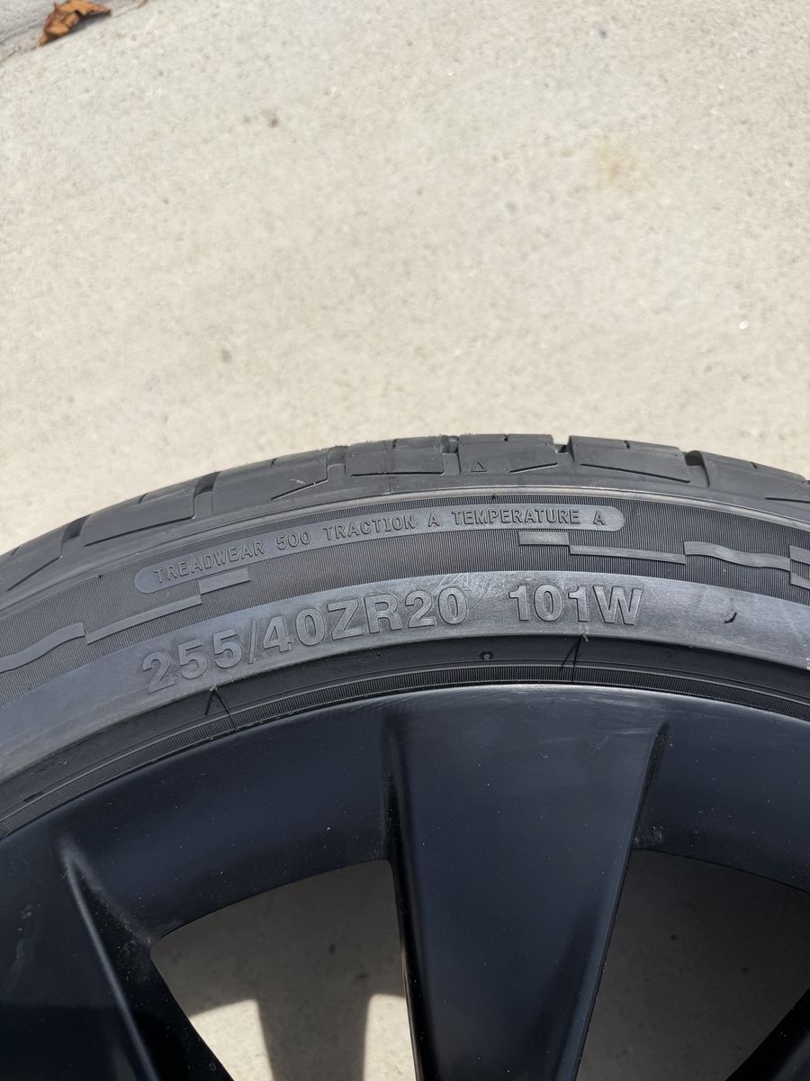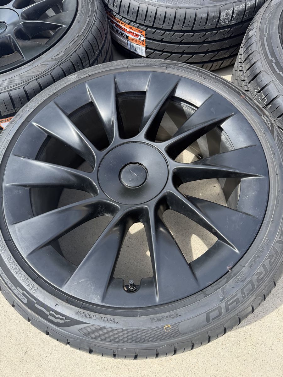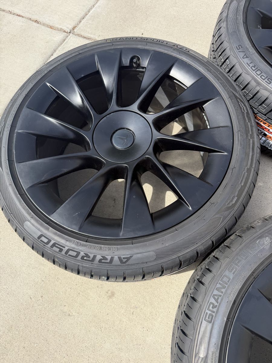 VenmoFor sale is a set of four wheels and tires for a Tesla model Y. These are the 20 inch black induction wheels. Rims are in good shape. The tires are new size 255/40r20 (OEM) size, Arroyo Grand Sport All-season, with 500 tread wear rating. Bluetooth TPMS senors are installed. These have been balanced and they're ready to bolt onto your car. Will fit all years and trims of the model Y. For my asking price I'll deliver them to you if you're along the wasatch front. Text is best. Thanks