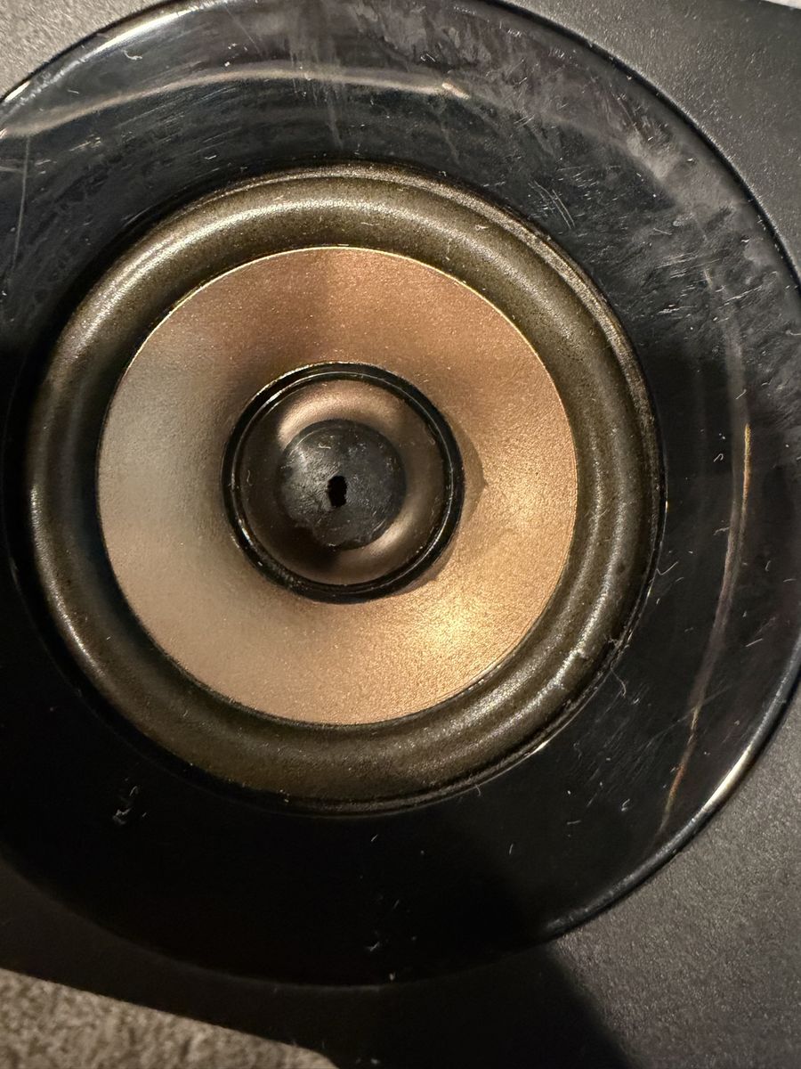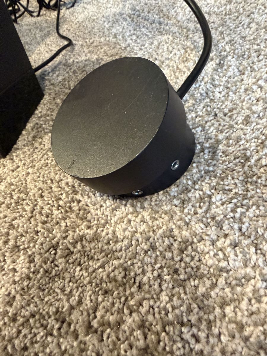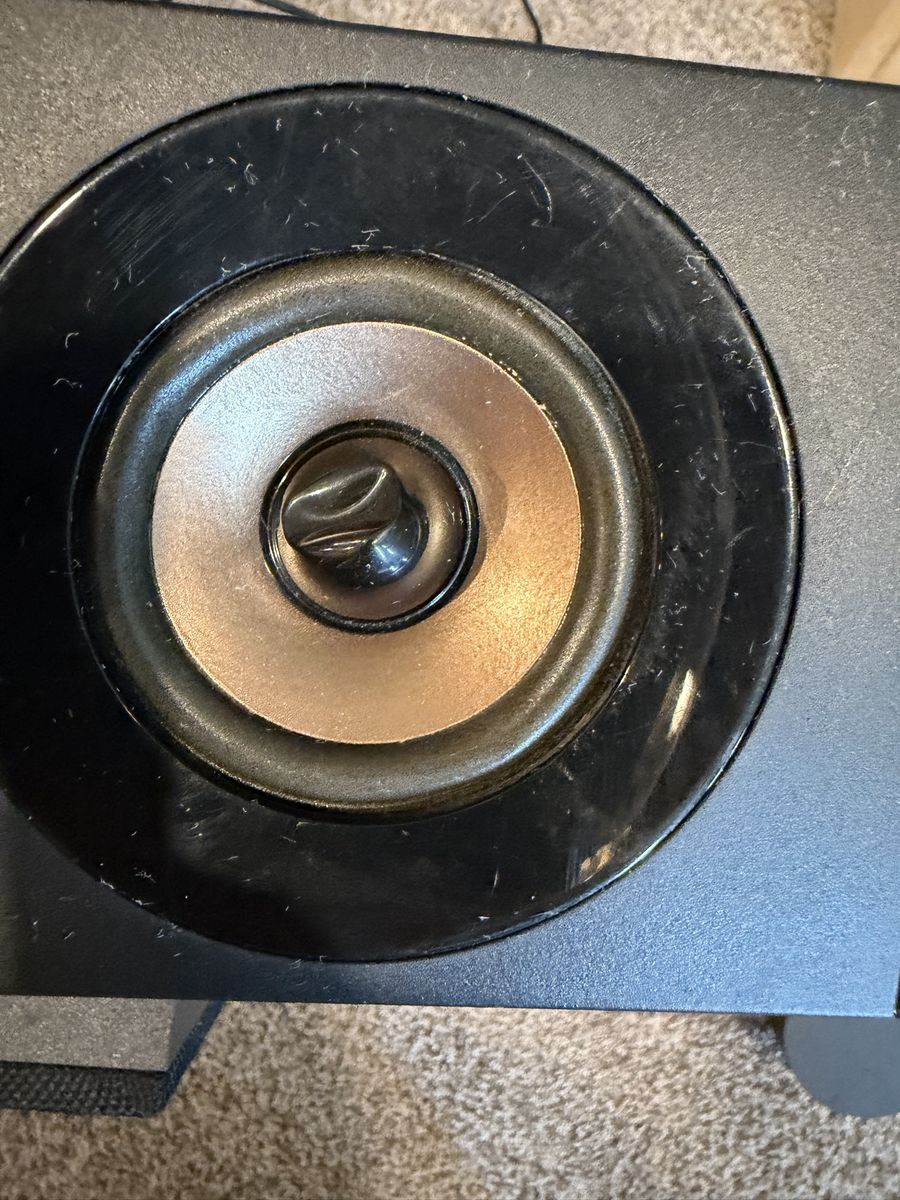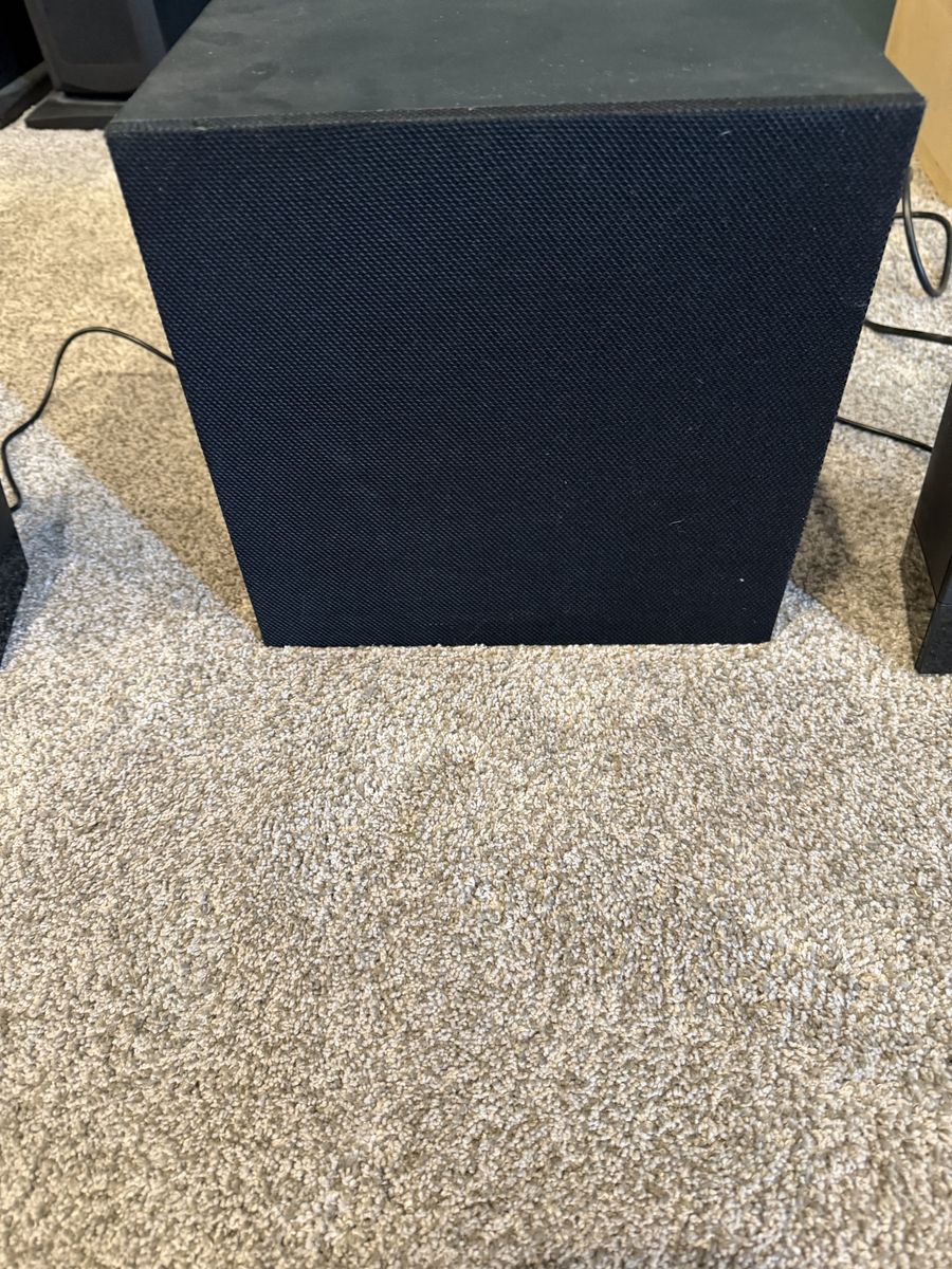 VenmoLogitech Z533 2.1 Multimedia Speaker System. Has RCA and 3.5 inputs, so can use in a lot a different ways. See Amazon link below for details. Used but still works great. Please see pictures for speaker cones. Doesn’t affect the sound quality.