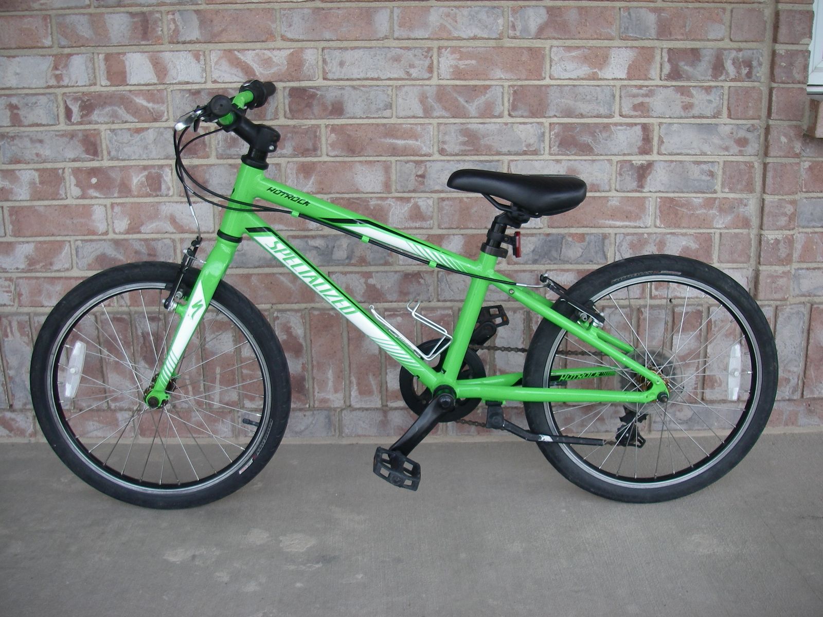 Little Boys 20" (wheel size) SPECIALIZED HOTROCK Aluminum Frame Mountain / Street Bike, 6-SPEED, V-Brakes, Kickstand, Color Green. Model is similar to the current SPECIALIZED RIPROCK, but has STREET TIRES (Nimbus Flak Jacket 20x1.50).