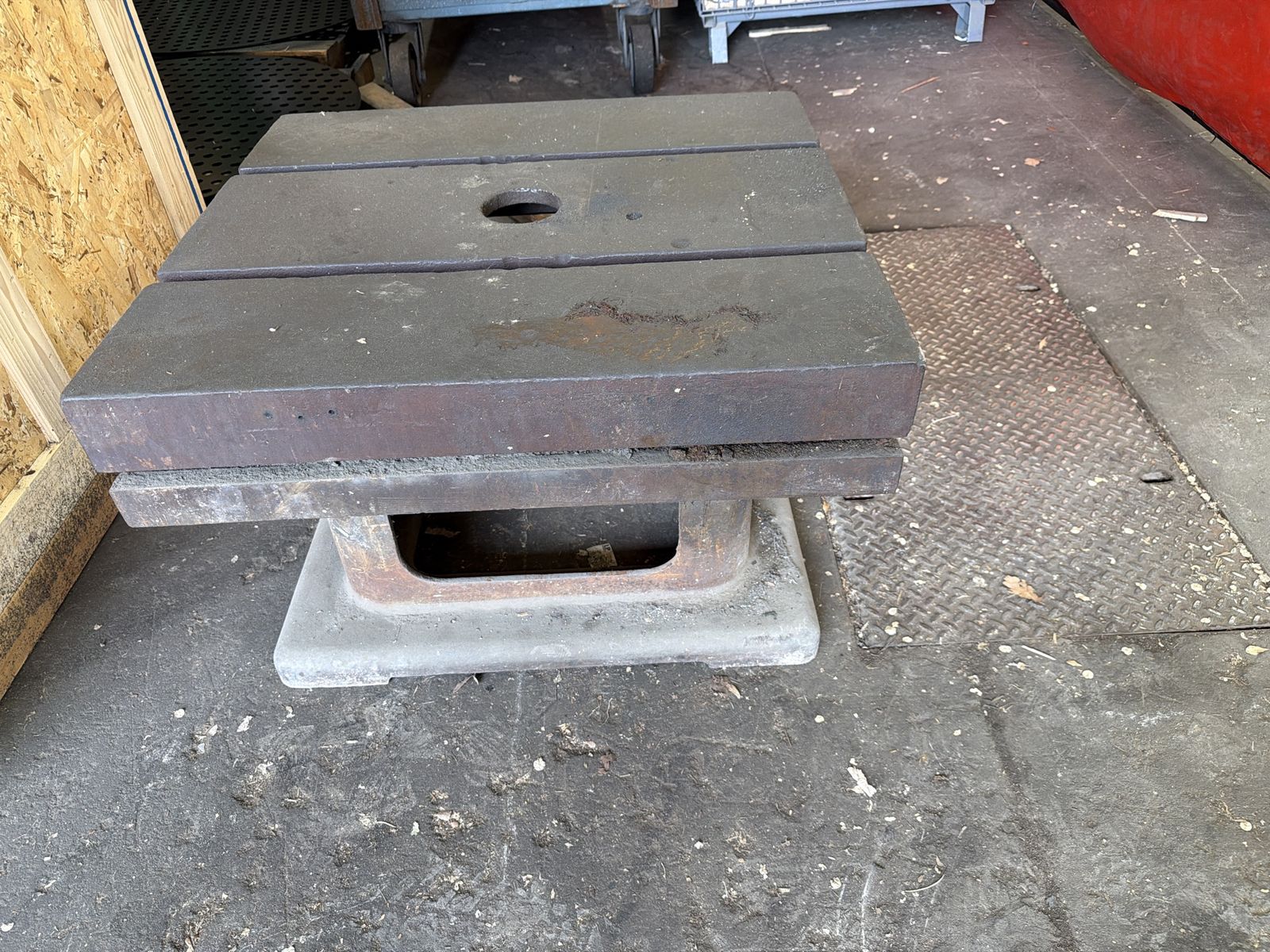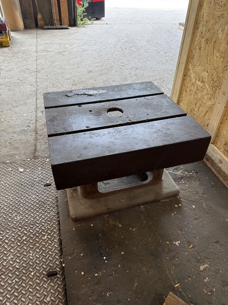 Stand for machine, has T-slots in it. Roughly 30” x 30”, about 24” tall. Very heavy duty.