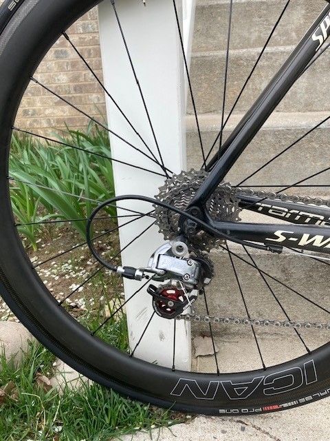 Mix of Sram Red and Force 10 speed drivetrain. Red shifters and crank, Force deraileurs and brakes. Has an Ultegra 11-28 cassette, I also have a SRAM Force 10-25 cassette.