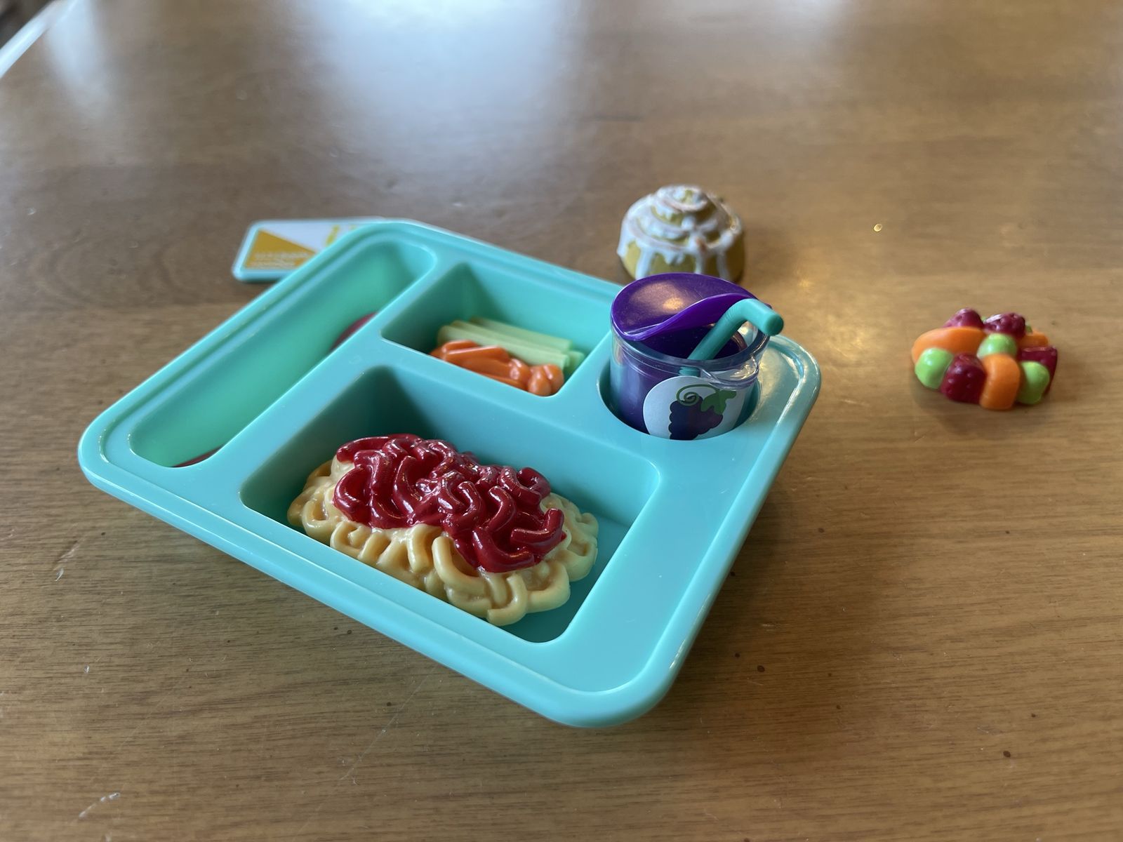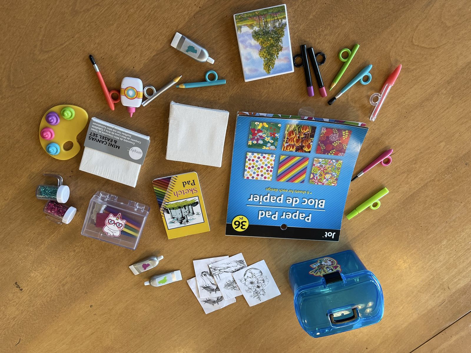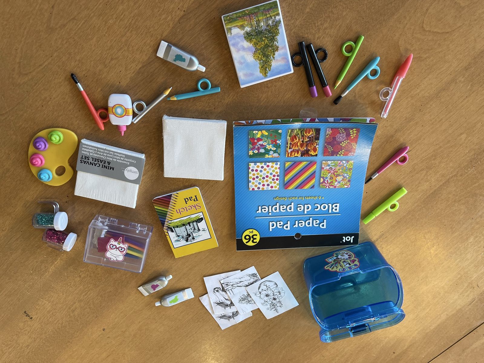 CashAppClassroom school filing cabinet with working drawers and school supplies, includes backpack, art box with supplies and a school lunch