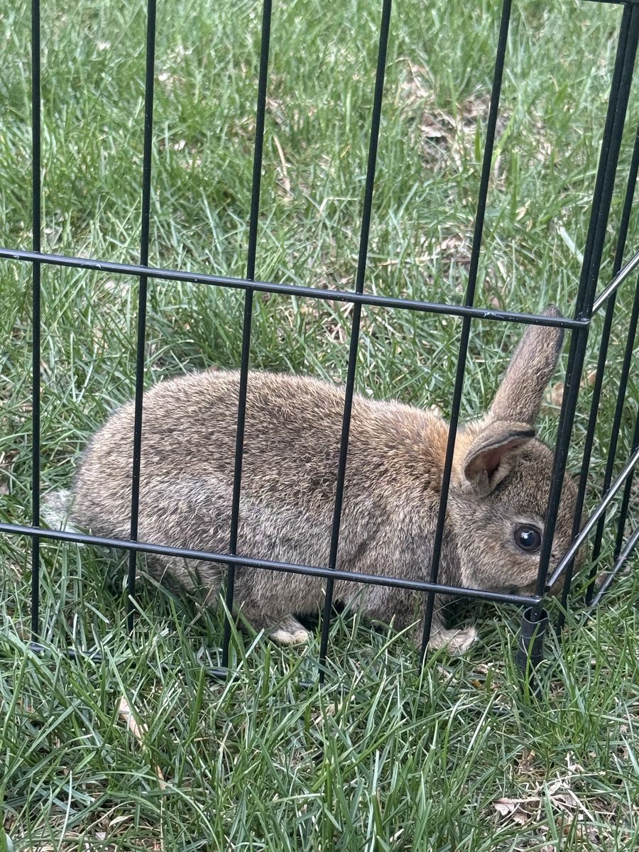 Baby bunny about 6-8 weeks. Working on litter box training. Can come with hutch and supplies for very discount price. Very sweet and friendly. Only get rid of because my other rabbits are mean to her