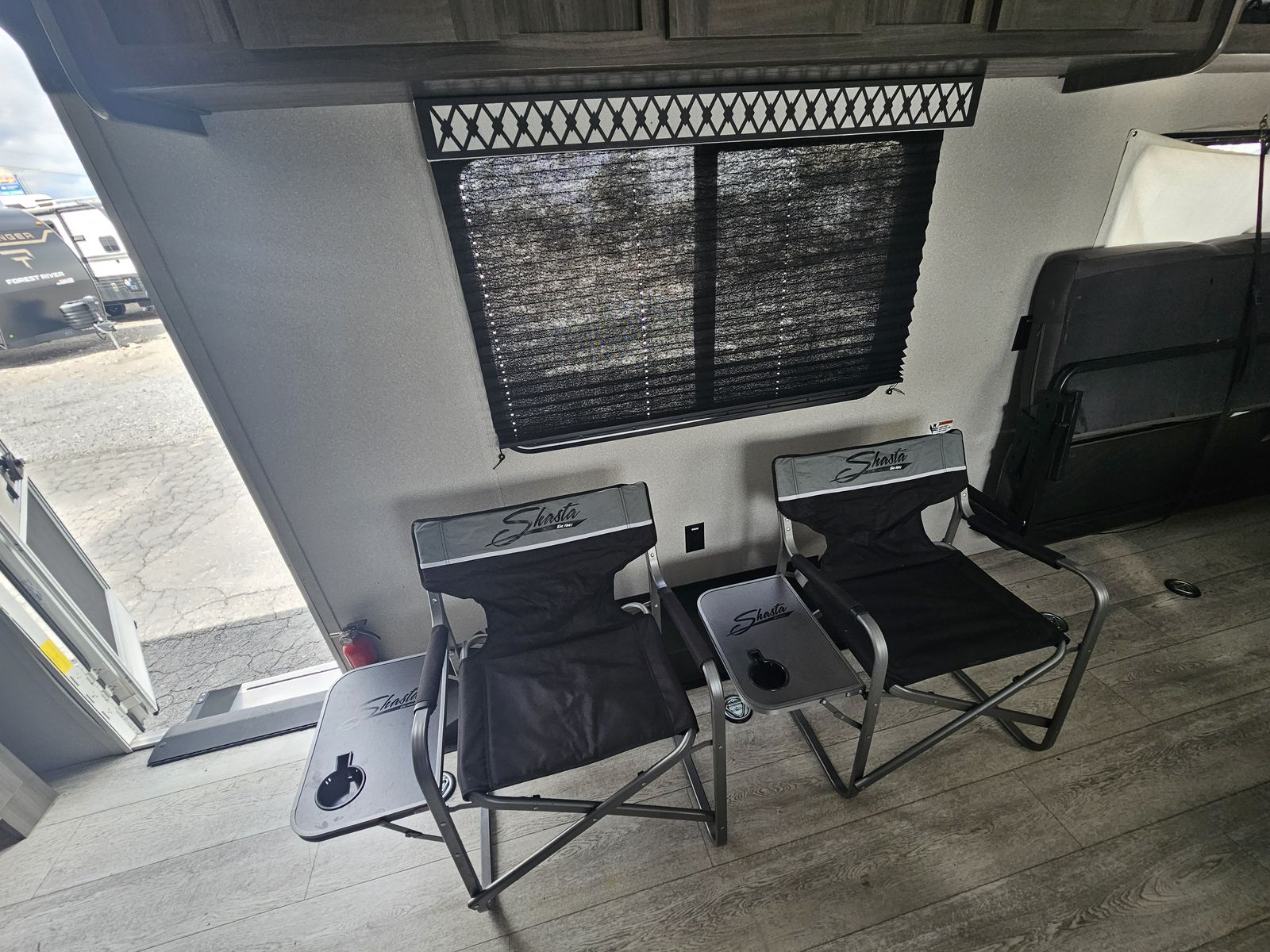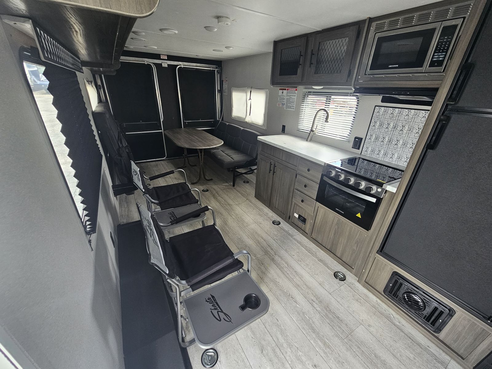 Clean 2021 Shasta M-260TH toy hauler in excellent condition. Sleeps comfortably with walk-around queen bed, spacious 17' garage, and convenient outdoor living features.