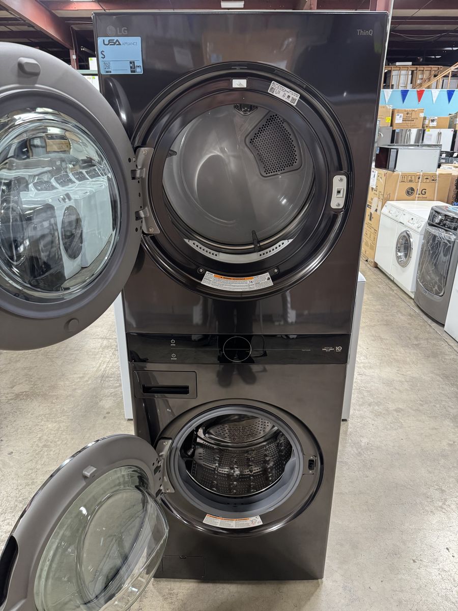LG 27 Inch Smart Electric WashTower with 4.5 cu. ft. Washer Capacity, 7.4 cu. ft. Dryer Capacity, TurboWash™360° Technology, Allergiene™ Wash Cycle, LG ThinQ® Technology, AI Fabric Sensor, and ENERGY STAR