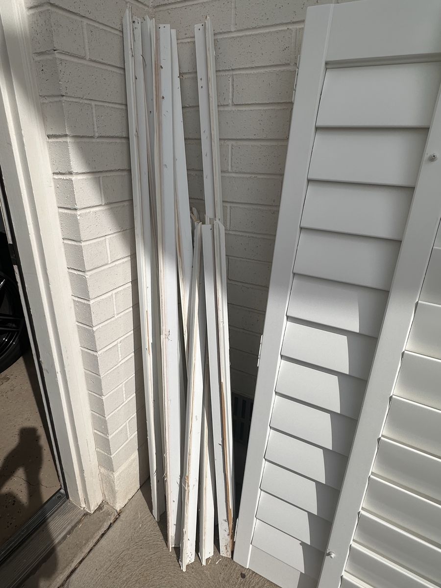 VenmoI had these custom built for my windows 12 years ago and just removed them. The frames that are installed inside the window seal frame that the shutters attach and pivot from had to be broken out in order to remove them. I have all of the frame pieces (although they are very beat up) otherwise you'd have to build your own frames for the actual shutters to sit inside of. There are 4 total - 3 of the same size and one smaller.