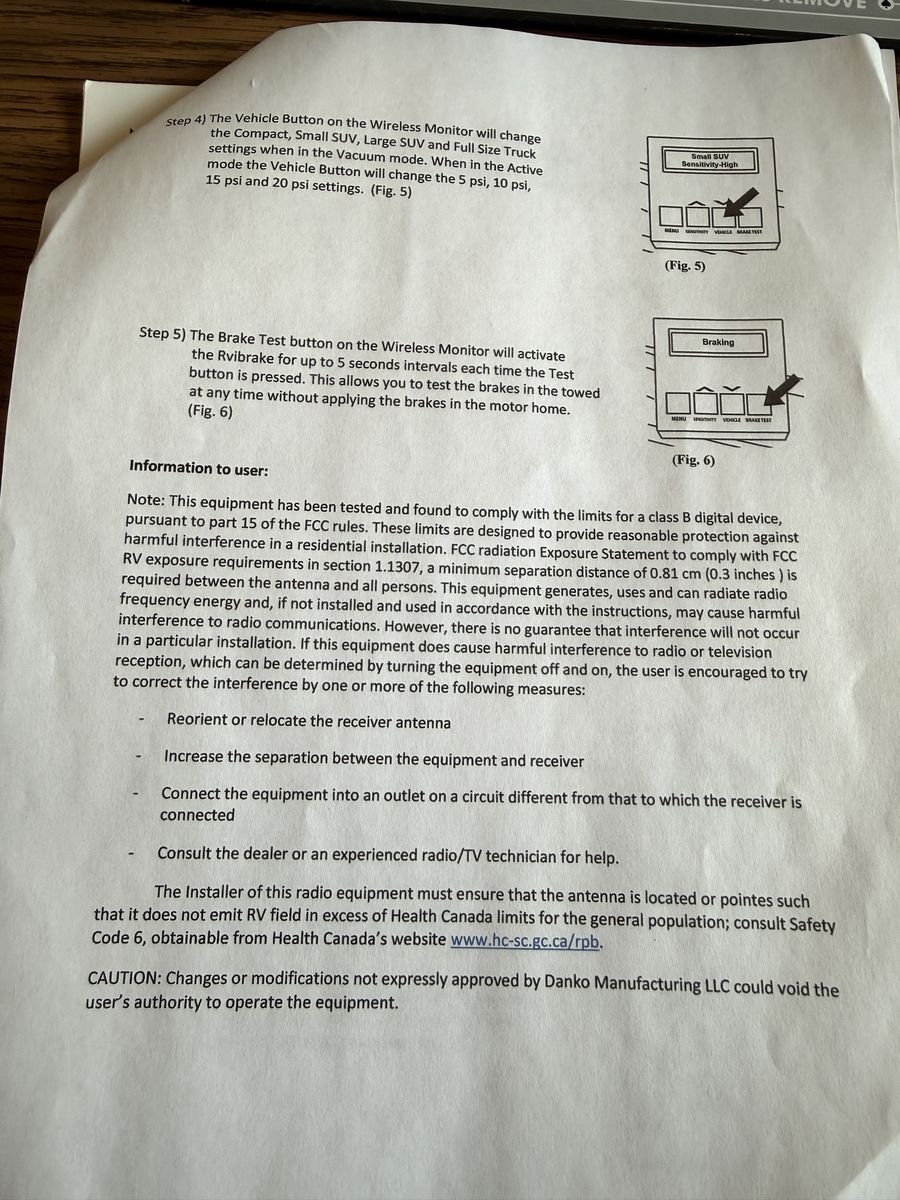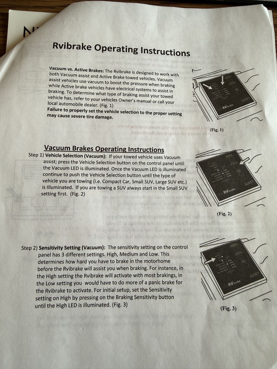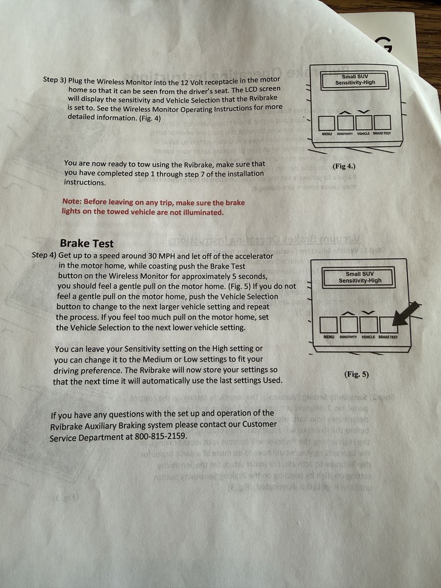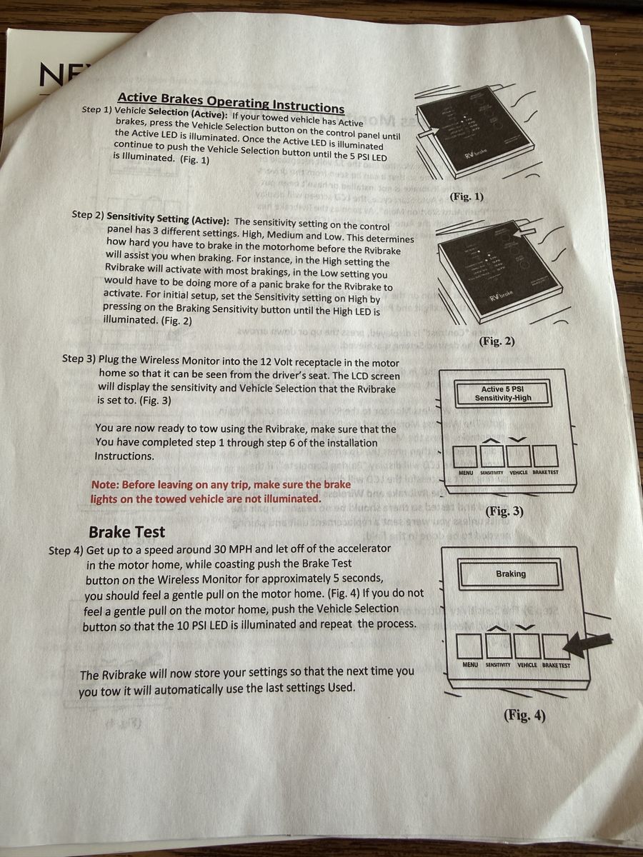 Brake system for a vehicle in tow. Useful for towing a vehicle behind an RV.