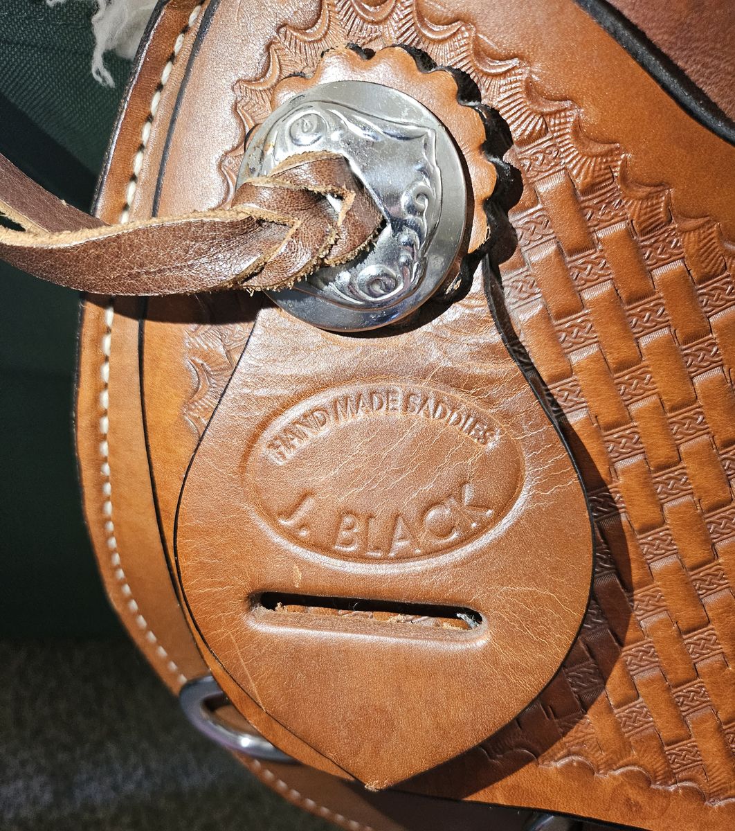 PayPalNever been used custom saddle. Maker is J. Black. Seat size is 17 inches. Comes with saddle pad.