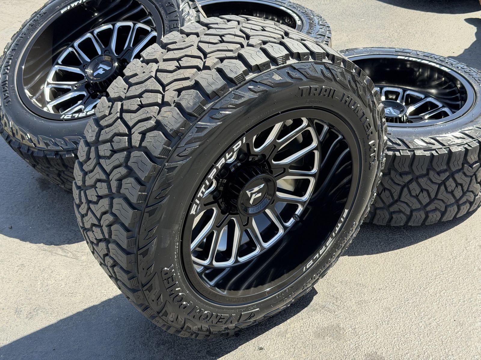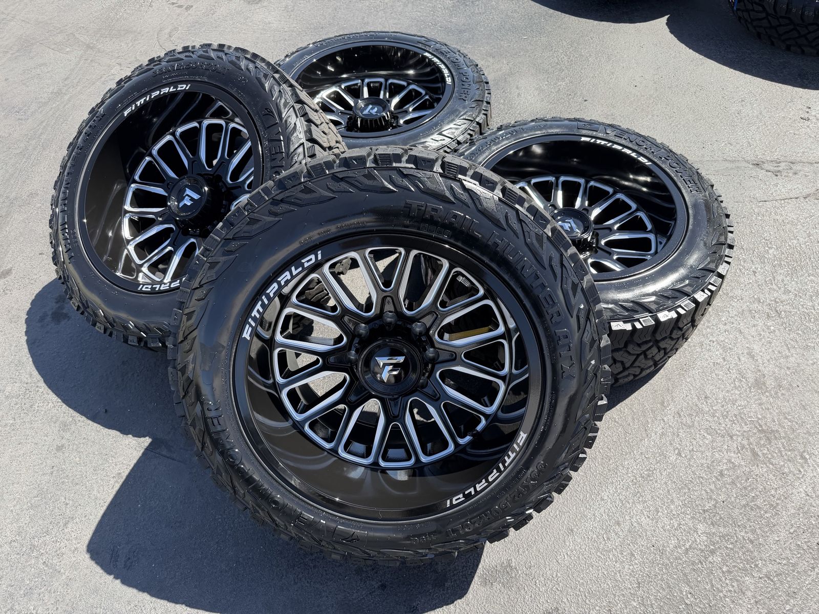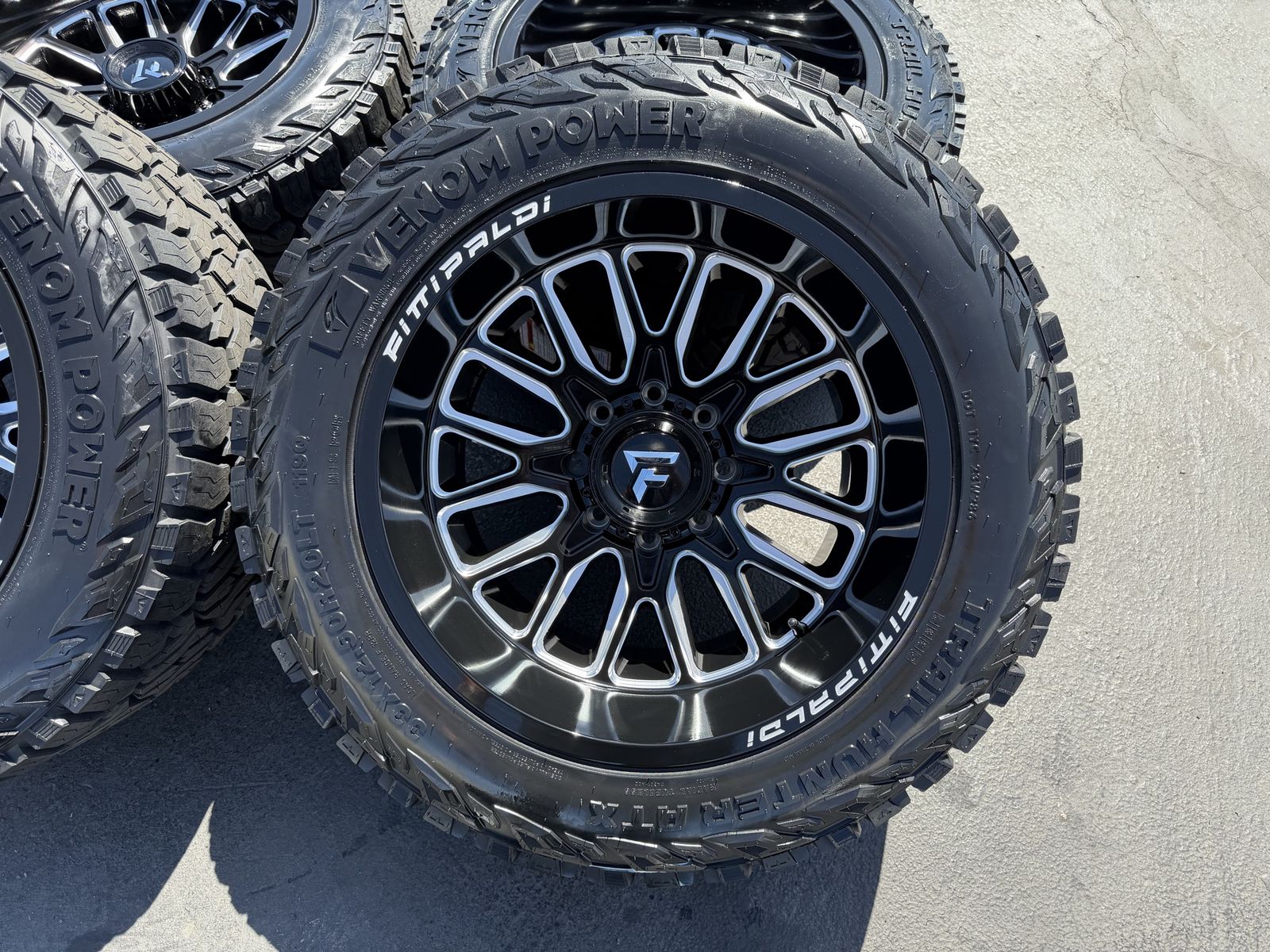 20x12 Fittipaldi FA18 Gloss black and Milled. -44et offset Wrapped with Venom Power ATX 33x12.50r20 load F 12 ply. Amazing package! Must see in person 8x6.5 (8x165.1) bolt pattern. These fit Dodge Ram 2500 3500 Cummins, PRE 2011 Chevrolet Silverado GMC Sierra Duramax, and PRE 98 Ford F250 F350 Superduty trucks. Huge savings! Call or txt 435-760-1194