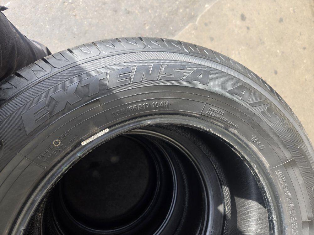 USED SET OF TIRES!! The brand is TOYO EXTENSA A/S 235/65R17 Free mount, balance, and brand new valve stems. Like new 90% tread left $320 for all 4 DOT 2023 $5 disposal fee per every old tire you leave for us to dispose of Also check out our GOOGLE reviews to assure you’re in good hands, just search (Oliver Tires) We also offer lots of other sizes new and used. Call or text for availability Espańol; 8016885139 Office: 8016620227 Or come visit us at 3010 west 500 south Salt Lake City Utah