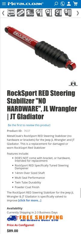 ZelleAll parts came off of my Jeep JL Rubicon The Rock Sport RED Steering Stabilizer is New!