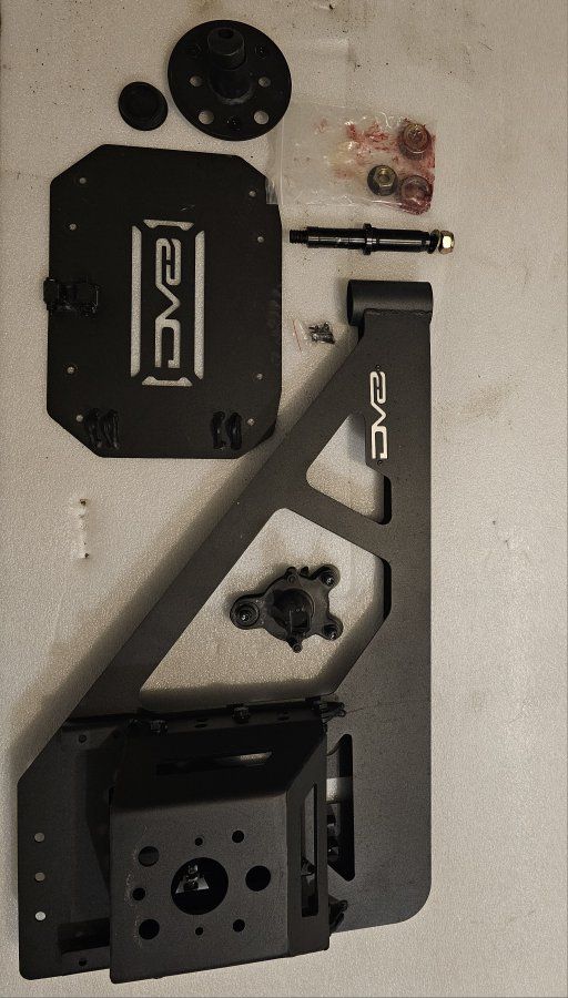 This spare tire swing is compatible with the MTO Series Steel Wrangler Bumper