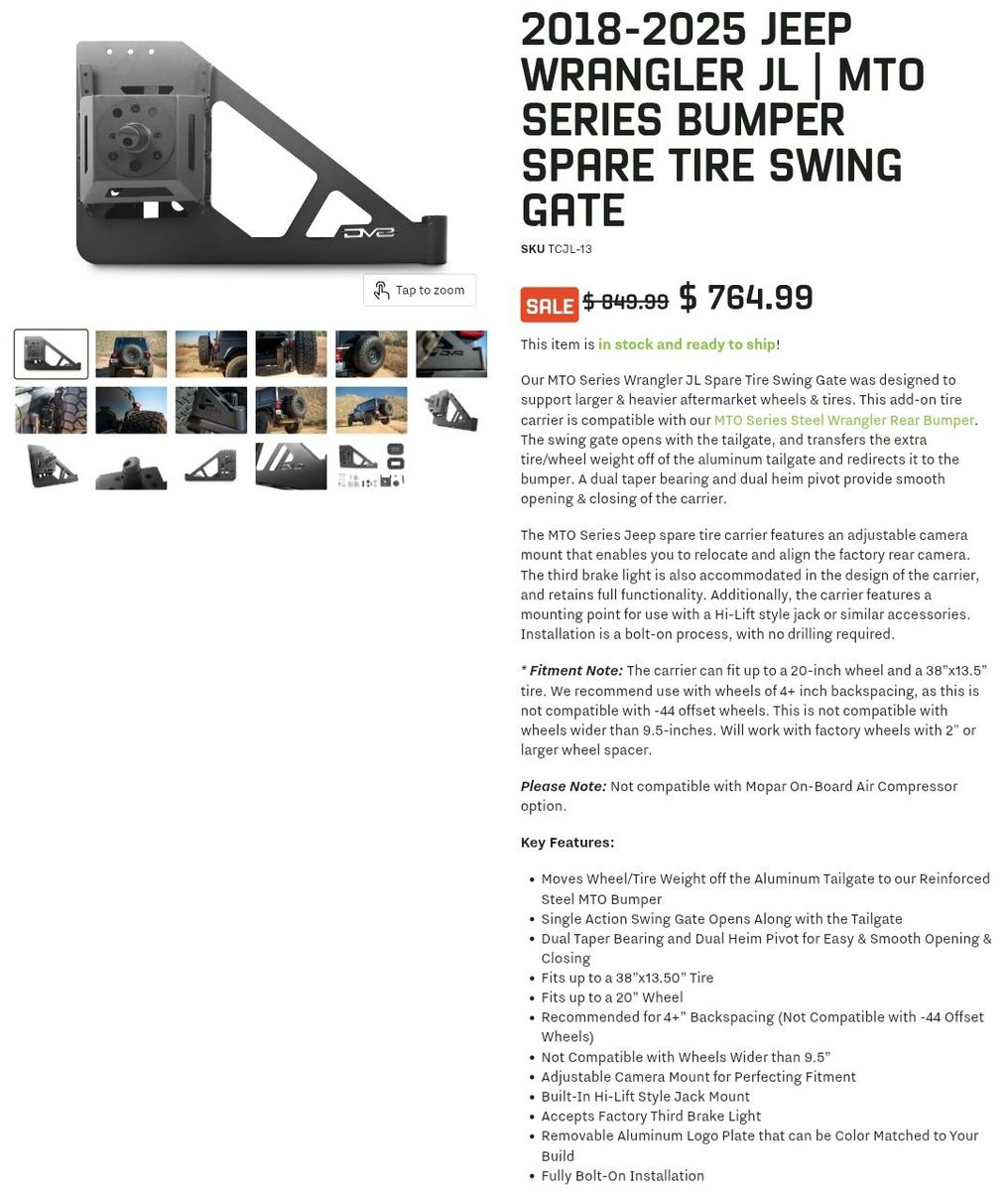 Zelle2018-2025 Jeep Wrangler JL DV8 MTO Series Bumper Spare Tire Swing Gate