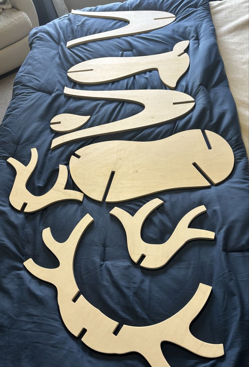 This really cute wooden Reindeer puzzle is Approx 44” tall and 33” wide. Could be stained or painted. Tears down to fit in box.