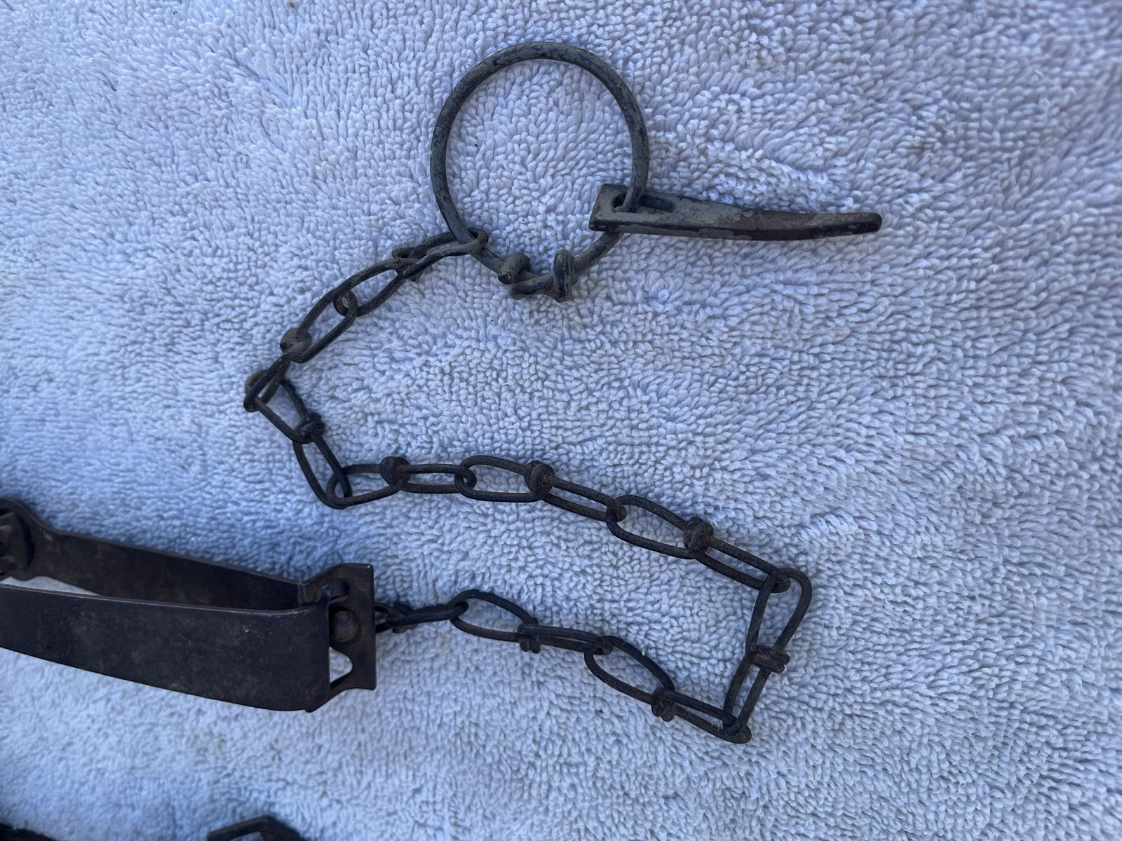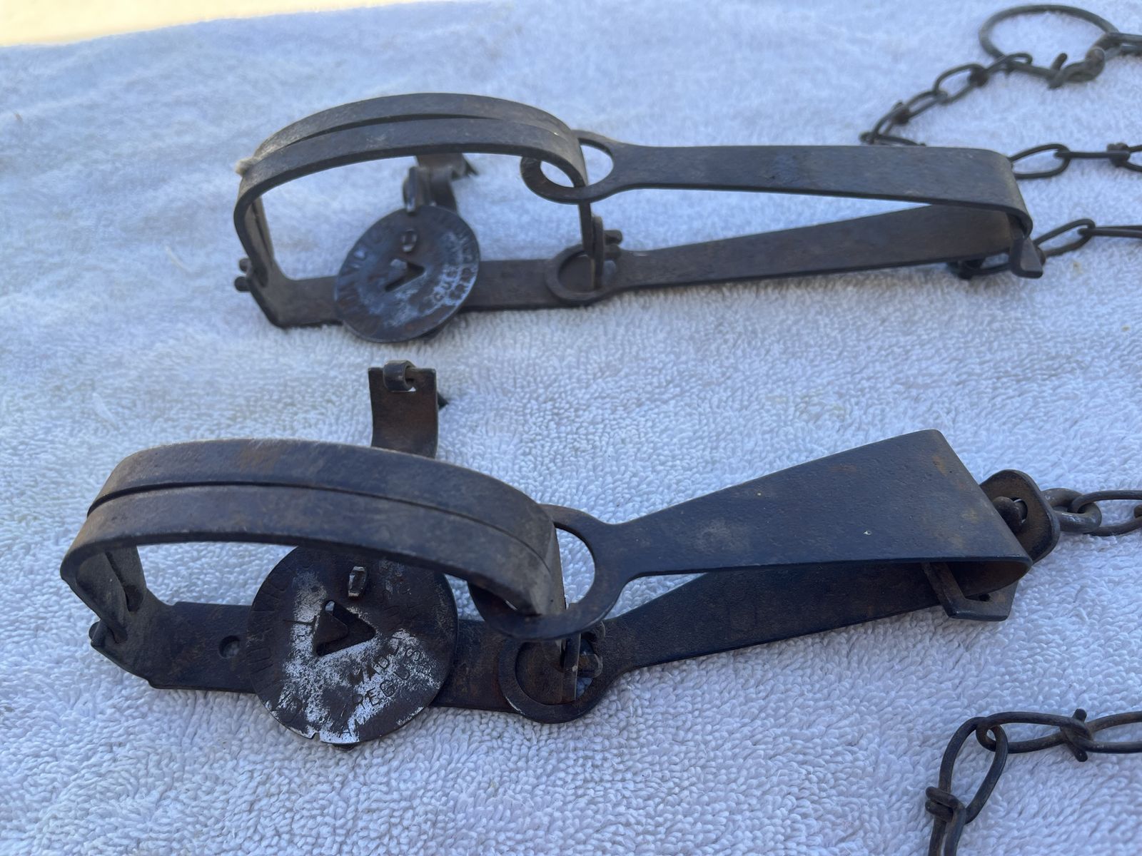 VenmoThese were made by Victor, a brand synonymous with high quality hunting equipment. These are vintage. The trap itself is 3 1/2 inches long, the total length of the trap is 8 inches. The chain on each is 15 inches long. These are marked with a #1. The smaller the number the smaller the animals they were ment to catch. These were made for small animals. The traps are rustic and cool. They would make a perfect display item, but they are in working order. You choose the one you like, price is for each. Or buy both for $45.00 Prices are firm.