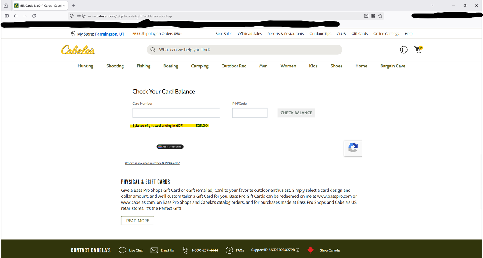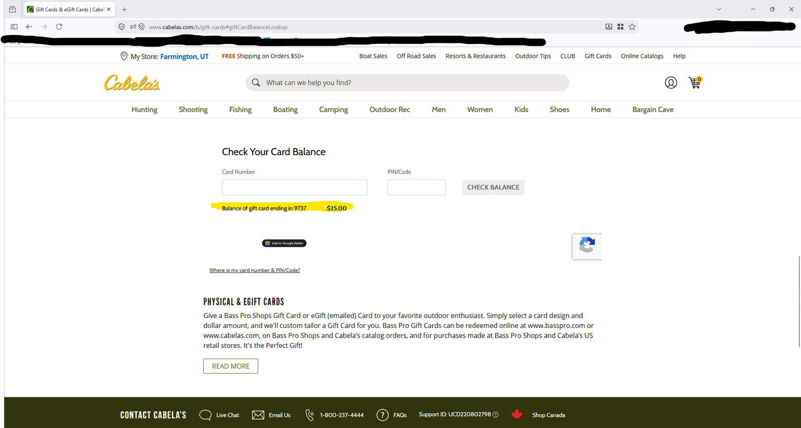 2 Cabela’s gift cards, each worth $25, selling each for 20 apiece, so $40 for $50. Great deal for someone that loves Cabela’s