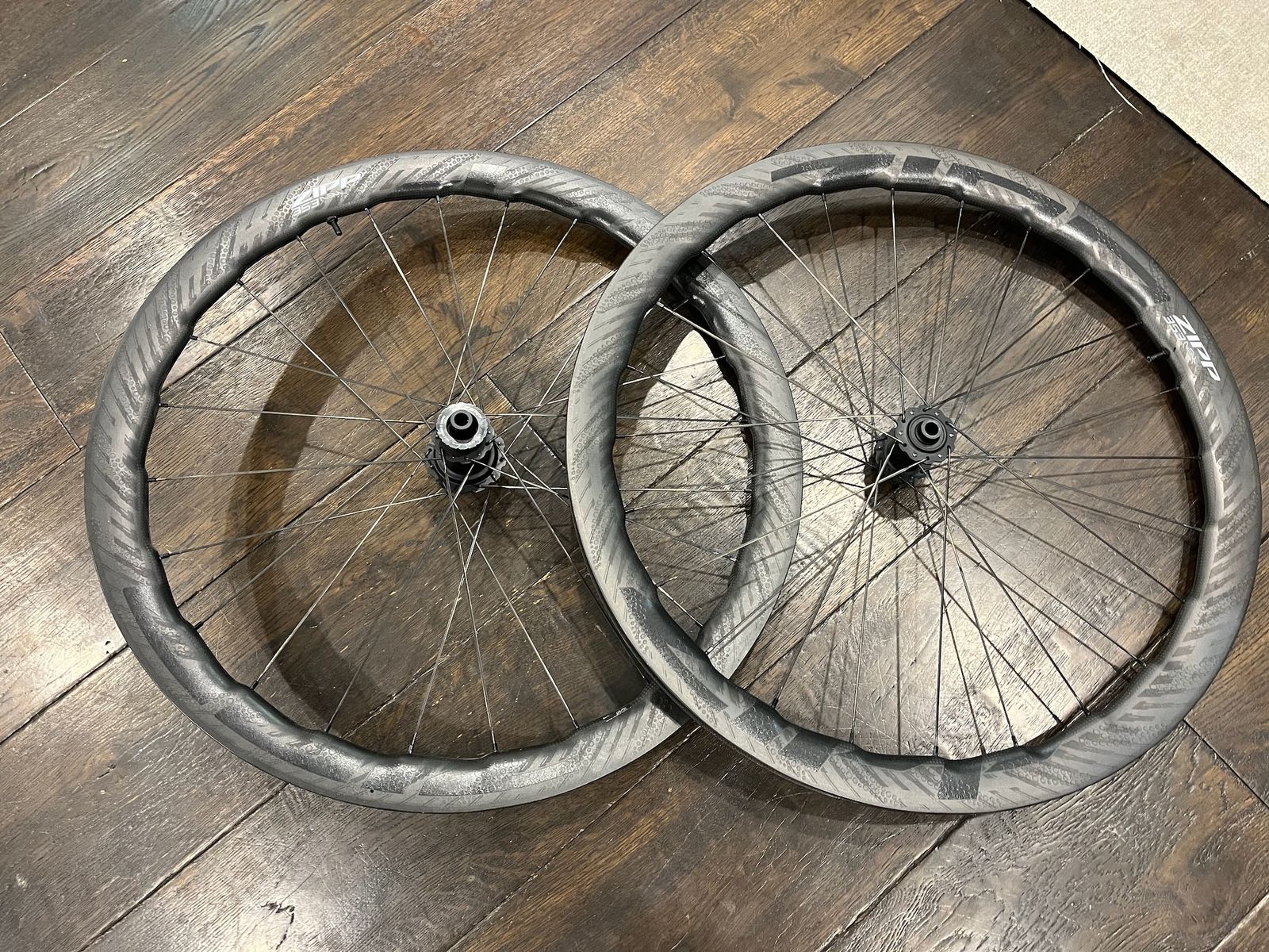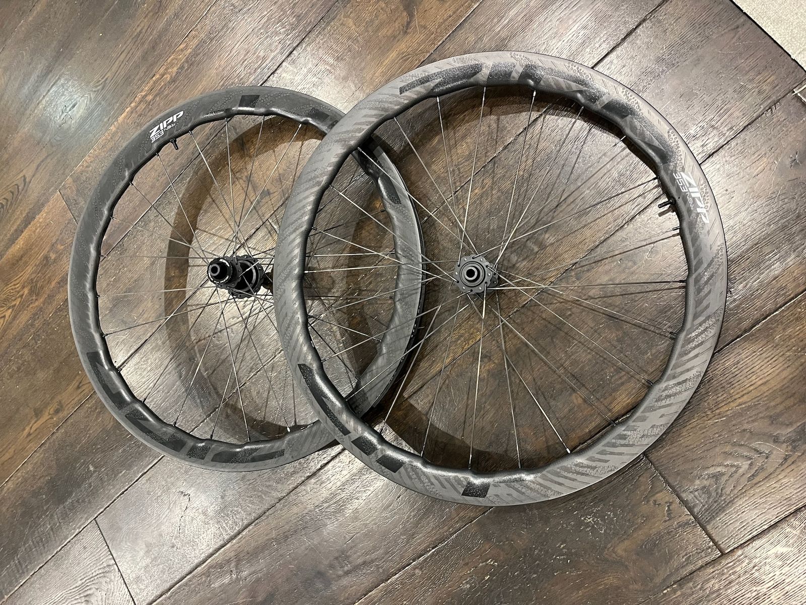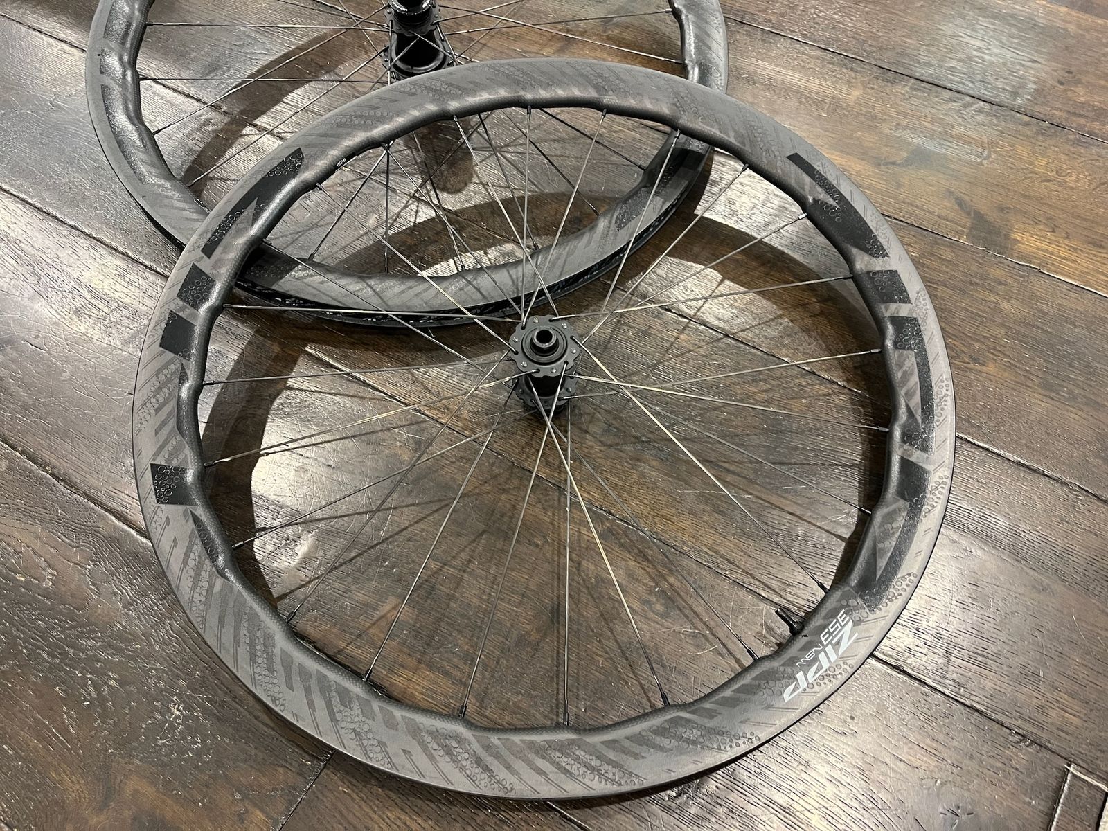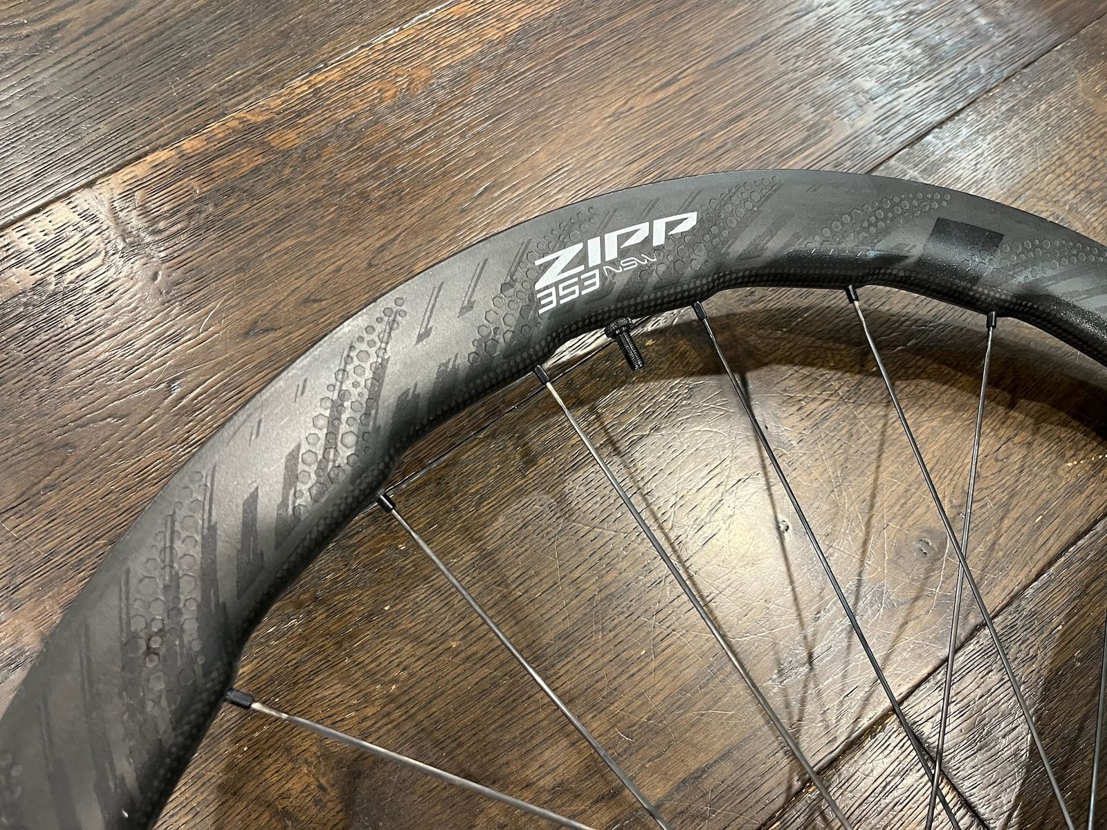 VenmoThese are the 2024 model Zipp 353 NSW wheels -- so fast, so light, so versatile. The front wheel has about 1000 miles on it and the rear has about 500. I dropped it from my workbench while changing tires and it was warrantied with an entire new rear wheel.